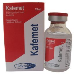 BİLEŞİMİ Her ml’sinde 250 mg Kafein ve koruyucu olarak Sodyum benzoat içerir. KULLANIM YERİ /ENDİKASYONLARI Kafemet Enjeksiyonluk Çözelti; merkezi sinir sisteminin ve özellikle de solunum merkezinin uyarılması gereken bütün durumlarda uyarıcı olarak kullanılır. Kollaps, zafiyet ve felç hallerinde, morfin, kloroform ve alkol gibi narkotikler ile sedatif maddelerle olan zehirlenmelerde, her çeşit akut ve kronik kalp yetersizliklerinde, akciğer ödemlerinde kalbi uyarıcı olarak kullanılır. Bu amaçla bazen, kardiyotonik glikozidlerle birleştirilir. İdrar miktarını arttırması nedeniyle, bilhassa asites olaylarında, ya tek başına ya da diğer diüretikler veya kalp glikozidleriyle birleştirilerek kullanılır. KULLANIM ŞEKLİ VE DOZU Kafemet Enjeksiyonluk Çözelti, Veteriner Hekim tarafından başka şekilde tavsiye edilmediği takdirde; Kafein’in farmakolojik dozu 5 - 15 mg / kg c.a.’tır. Deri altı (SC), tek doz olarak uygulanır. Kafemet Enjeksiyonluk Çözelti aşağıdaki pratik dozlarda uygulanır.
