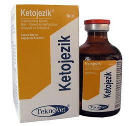 KETOJEZİK BİLEŞİMİ Renksiz ve berrak görünümlü, steril bir çözelti olan Ketojezik Enjeksiyonluk Çözelti her ml’sinde 100 mg Ketoprofen içerir. FARMAKOLOJİK ÖZELLİKLERİ Ketoprofen arilpropiyonik asit grubuna bağlı non - steroid antienflamatuar, analjezik, antipiretik, antiendotoksik ve antibradikinin etkili bir maddedir. Ketoprofen’in antienflamatuar etkisi siklooksijenaz (COX) enzimlerinin baskılanması yoluyla yangılı dokuda prostaglandinlerin sentezini engellemesi sonucunda meydana gelir. Ketoprofen hem siklooksijenaz hem de lipooksijenaz yolunu inhibe eder. Siklooksijenaz inhibisyonu ile araşidonik asitten vazoaktif, enflamatuar, piretik etkili ve trombosit agregasyonunu sağlayan tromboksan A2, prostaglandin ve prostasiklinlerin oluşumunu engeller. Lipooksijenaz inhibisyonu ile de vasküler permeabiliteyi arttıran, lökositler üzerindeki şemotaktik özelliğinden dolayı enflamatuar etkili olan lökotirienlerin oluşumunu engeller. Ketoprofen kas içi uygulanmasından sonra uygulama yerinden kolay ve iyi emilir. Kas içi uygulamadan yaklaşık 2 saat sonra kas - iskelet sisteminde antienflamatuar etkisini gösterir ve yaklaşık 12 saat sonra maksimum plazma seviyesine ulaşır. Atlarda damar içi uygulamadan 15 dakika sonra analjezik etkisi oluşur ve ilerleyen saatlerde artarak devam eder. %99 oranında plazma proteinlerine bağlanır. Plazma yarı ömrü 2 saattir. Biyoyararlanımı % 85 - 100’dür. Karaciğerde glukuronik asitle birleştirildikten sonra büyük ölçüde (%90) ilk 24 saat içinde idrarla atılır. Atlarda uygulamadan 10 gün sonra idrarda ketoprofen ve metabolitleri görülebilir (analitik duyarlılık 50 ng / ml) ÖZEL KLİNİK BİLGİLER VE HEDEF TÜRLER İÇİN ÖZEL UYARILAR