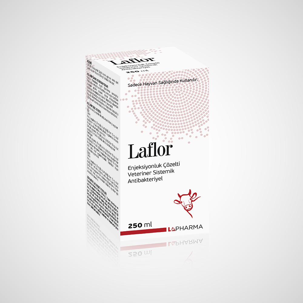BİLEŞİMİ: LAFLOR Enjeksiyonluk Çözelti berrak, açık sarı renkte steril çözelti olup her ml’sinde 300 mg Florfenikol ihtiva eder. KULLANIM SAHASI VE ENDİKASYONLAR: Sığırda: Florfenikole duyarlı Mannheimia haemolytica, Pasteurella multocida ve Histophilus somni suşları tarafından meydana getirilen solunum sistemi enfeksiyonlarının tedavisinde ve metafilakside kullanılır. Metafilaktik kullanımdan önce sürüde hastalığın varlığından emin olunmalıdır. Koyunda Mannheimia haemolytica ve Pasteurella multocida’ya bağlı solunum sistemi enfeksiyonlarının tedavisinde kullanılır. KULLANIM ŞEKLİ VE DOZU: Sığırlarda kas içi veya deri altı yolla, koyunda kas içi uygulanır. Sığır Tedavi Kas içi uygulama: 20 mg/kg vücut ağırlığı (her 15 kg vücut ağırlığı için 1 ml ürün) dozunda, iki defa, uygulamalar arasında 48 saat ara olacak şekilde yapılmalıdır. Deri altı uygulama: 40 mg/kg vücut ağırlığı (her 15 kg vücut ağırlığı için 2 ml ürün) dozunda, tek doz olarak uygulanır. Metafilaksi: Deri altı uygulama: 40 mg/kg vücut ağırlığı (her 15 kg vücut ağırlığı için 2 ml ürün) dozunda, tek doz olarak uygulanır. Her iki uygulama yolu içinde bir enjeksiyon bölgesinde 10 ml’den daha fazla ürün uygulanmamalıdır. Enjeksiyon boyun bölgesinden yapılmalıdır. Koyun Tedavi Kas içi uygulama: 20 mg/kg vücut ağırlığı (her 15 kg vücut ağırlığı için 1 ml ürün) dozunda, arka arkaya 3 gün boyunca günlük olarak uygulanır. Bir enjeksiyon bölgesinde 4 ml’den daha fazla ürün uygulanmamalıdır. Kullanım ayrıntıları için prospektüsü okuyunuz. GIDALARDA İLAÇ KALINTI UYARILARI: İlaç Kalıntı Arınma Süresi (İ.K.A.S.): Tedavi süresince ve son ilaç uygulamasından sonra eti için yetiştirilen sığırlar; kas içi uygulamalarda (20 mg/kg vücut ağırlığı, iki kez) 30 gün, deri altı uygulamalarda (40 mg/kg vücut ağırlığı, bir kez) 44 gün geçmeden, koyunlar; kas içi uygulamalarda 39 gün geçmeden kesime gönderilmemelidir. İnsan tüketimi için süt elde edilen sağmal ineklerde ve koyunlarda (kuru dönem dahil) kullanılmaz. TİCARİ TAKDİM ŞEKLİ: Karton kutu içerisinde; gri brombutil tıpa ve yeşil flip-off kapakla kapatılmış 50 ml, 100 ml ve 250 ml Tip 2 amber renkli cam şişelerde satışa sunulmuştur. MUHAFAZA ŞARTLARI VE RAF ÖMRÜ: Orijinal ambalajında, 25°C’nin altında, buzdolabına konulmadan ve dondurulmadan saklanmalıdır. Raf ömrü imal tarihinden itibaren 2 yıldır. Şişe üzerindeki brombutil tıpa 20 kez delinebilir ve ürün ilk açıldıktan sonra 28 gün içinde kullanılmalıdır. |
