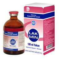 Lakmin Bileşimi: Lakmin, 1 ml’sinde 100 mg etanolamin fosfat ve 0,050 mg siyanokobalamin içeren, berrak, pembe renkte bir çözeltidir. Lakmin Endikasyonları Sığır, at ve köpeklerde fosfor ve vitamin B12 eksikliklerinin giderilmesinde ve bu eksikliklerden kaynaklanan hastalıkların tedavisinde kullanılır. Ayrıca stres altındaki köpek, sığır ve atlarda viral enfeksiyonlarda destekleyici olarak, makrositik aneminin ek tedavisinde, gebelik ve laktasyon destekleyicisi olarak ve ketozis, hipokalsemi, efemeral ateş ve doğum sonrası paraliz durumlarında destekleyici veya tedaviye yardımcı olarak kullanılır. Lakmin Kullanım Şekli ve DozuKas içi yolla uygulanır. Atlarda; 1 ml/15 kg (30 ml/450 kg c.a.) Nekahat döneminde 3 gün boyunca günde 1 kere; destekleyici tedavi olarak (gebelik, laktasyon, stres durumlarında) haftada 2 kere veya veteriner hekim önerdiği şekilde kullanılır. Özel Klinik Bilgiler ve Hedef Türler İçin Özel Uyarılar Hedef türlerde kullanımında herhangi bir yan etki mevcut değildir. Gebelikte Kullanımı: Gebelik ve laktasyon periyodunda kullanımında herhangi bir sakınca yoktur. İlaç Kalıntı Arınma Süresi (İ.K.A.S): Tedavi süresince ve son ilaç kullanımını takiben et ve süt için ilaç kalıntı süresi sıfır ‘’0’’ gündür. MUHAFAZA ŞARTLARI VE RAF ÖMRÜ Özel saklama koşullarına ihtiyaç duyulmadan, kendi ambalajı içinde, ağzı sıkıca kapatılmış olarak, kuru bir yerde, direkt güneş ışığından koruyarak ve 25°C’nin altında oda ısısı şartlarında, dondurulmadan saklanmalıdır. TİCARİ TAKDİM ŞEKLİ Lakmin, Karton kutu içerisindeki 100 ml ve 250 ml’lik amber renkli Tip 2 cam flakonlar, kırmızı klorobutil kauçuk tıpa ile kapatılmış ve kırmızı alüminyum kapsüller kıvrılmıştır. |