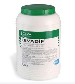 BİLEŞİMİ 100 g'ında: 15 g Levamizol HCI içerir. ENDİKASYONLARI/KULLANIM SAHASI Levadif, kanatlıların başlıca parazitleri olan Askaridia galli, Heterakis gallinarum ve Capillaria sp.'nin ergin formlarına larva formlarına karşı antihelmintik olarak etkilidir. KULLANIM ŞEKLİ VE DOZU Veteriner hekim tarafından başka şekilde tavsiye edilmediği takdirde; İçme suyuna (18-36 mg/kg) hesabıyla katılan Levamizol kanatlılara 8-12 verilmelidir. Levadif, suda kolay eriyen, hoş lezzetli bir preparattır. Kanatlılarda verim düşüklüğüne yol açan parazitlerden korunma ve tedavide ayda bir kez Levadif uygulaması yapılabilir. 600 pilice 120 L. suda eritilerek (0,125 mg/ml) 300 tavuğa 75 L. suda eritilerek verilmelidir (0,2 mg/ml). |
