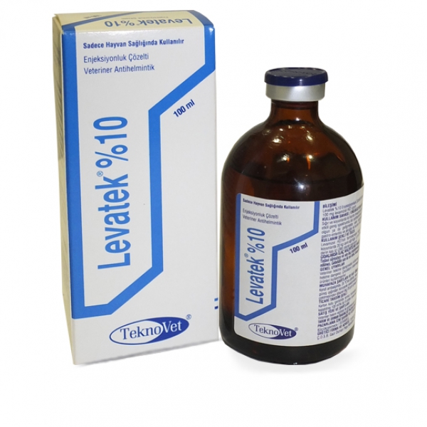 BİLEŞİMİ Her ml’sinde 100 mg levamizol HCI, koruyucu olarak 1.3 mg metil parahidroksibenzoat (E218), 0.2 mg propil parahidroksibenzoat (E216), 2.0 mg sodyum metabisülfit (E223) içerir. KULLANIM SAHASI / ENDİKASYONLARI Levatek %10 Enjeksiyonluk Çözelti, sığır ve koyunlarda kıl kurdu invazyonlarının tedavisinde ve kontrolünde kullanılmak üzere etkili geniş spektrumlu bir antihelmintiktir. Ürün, aşağıda belirtilen levamizol HCI’ye duyarlı organizmaların olgun ya da gelişmekte olan olgunlaşmamış formlarının neden olduğu parazitik gastro-enteritis ve akciğer kıl kurdu invazyonlarında tedavi ve kontrol amacı ile kullanılır. Akciğer kıl kurtları (yetişkin ve larva formları): Dictyocaulus spp. Mide-bağırsak kıl kurtları (yetişkin ve larval formları): Trichostrongylus sp. Strongyloides sp., Cooperia sp. Ostertagia sp. (sığırlardaki inhibe halde bulunan Ostertagia larvaları hariç) Haemonchus sp. Nematodirus sp. Bunostomum sp. Oesophagostomum sp. Chabertia sp. KULLANIM ŞEKLİ VE DOZU Levamizol HCI’nin farmakolojik tedavi dozu 7.5 mg / kg canlı ağırlıktır. Hayvan başına sığırlarda maksimum 30 ml’yi, koyunlarda 3 ml’yi geçmeyecek şekilde, 20 kg canlı ağırlığa 1,5 ml Levatek %10 Enjeksiyonluk Çözelti deri altı (SC) ve derin kas içi (İM) olarak uygulanır. Doğru dozun uygulanmasını sağlamak için vücut ağırlığı mümkün olduğunca doğru bir şekilde belirlenmelidir. Hayvanlara bireysel müdahaleden ziyade topluca muamele edilmesi gerekiyorsa, az veya fazla doz almayı önlemek için vücut ağırlığına göre gruplandırılmalı ve buna göre doz uygulaması yapılmalıdır. Doğru şekilde kalibre edilmiş dozaj ekipmanı kullanılmalıdır. Tıpa 40 kezden fazla delinmemelidir. Veteriner hekim, parazit kontrolünü yeterli oranda sağlamak için uygun doz programları ve sürü yönetimi ile ilgili tavsiyelerde bulunmalıdır. GIDALARDA İLAÇ KALINTILARI HAKKINDA UYARILAR Tedavi süresince ve son ilaç uygulamasını takiben sığır ve koyunlar 28 gün süreyle kesime sevk edilmez. Gebeliğin son iki ayı dahil, insan tüketimi için süt üreten sığır ve koyunlarda kullanılmaz. TİCARİ TAKDİM ŞEKLİ Karton kutu içerisinde kırmızı bromobutil kauçuk tıpa ve lacivert alüminyum flip-off kapak ile kapatılmış 100 ml’lik tip II amber renkli cam flakonlarda satışa sunulmuştur. |