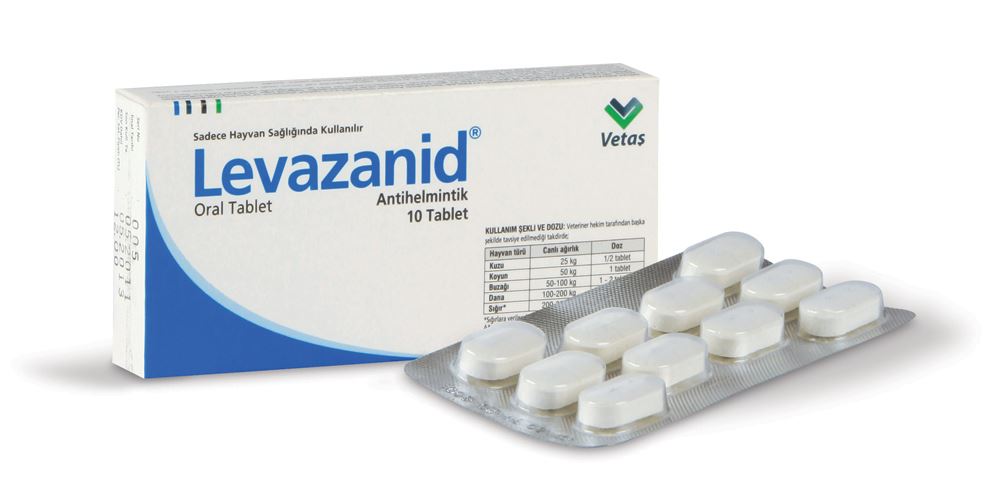 BİLEŞİMİ KULLANIM SAHASI/ENDİKASYONLAR Koyunlarda; Karaciğer ve böbrek yetmezliği bulunan hayvanlara uygulanmamalıdır. Gebelikte Kullanım: Önerilen dozlarda kullanıldığında gebelerde güvenlidir. KULLANIM ŞEKLİ VE DOZU Levamizol'ün farmakolojik dozu, sığır ve koyunlarda 7,5 mg/kg canlı ağırlıktır; Oksiklozanid'in ise, sığırlarda 10-15 mg/kg canlı ağırlık ve koyunlarda 15 mg/kg canlı ağırlıktır. Ağızdan bir miktar su yardımı ile yutturularak veya su içinde çözdürüldükten sonra içirilerek uygulanır. Buna göre, pratikte; Kuzu (25kg) 1/2 tablet |