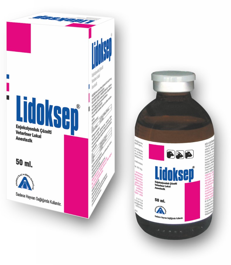 BİLİŞİMİ Lidoksep 1 ml. de 20 mg Lidokain HCI ile 0,011 mg Epinefrin (Adrenalin) bitartrate içeren renksiz, berrak, steril bir çözeltidir. ENDİKASYONU / KULLANIM SAHASI Lidoksep Enjeksiyonluk Çözelti, tektırnaklı, kedi ve köpeklerde lokal ve bölgesel anestezi amacıyla kullanılır. Sinir blokajı sağlamak amacıyla, paravertebral ve infiltrasyon anestezisini gerektiren güç doğum, vajinal ve rektal prolapsus, sezeryan gibi doğum olayları laparotomi, meme tümörü rezeksiyonu kuyruk kesme ve infiltrasyon anestezisi ile gerçekleştirilen diğer cerrahi işlemlerde kullanım alanı bulur. KULLANIM ŞEKLİ VE DOZU Veteriner hekim tarafından başka bir şekilde önerilmemiş ise; Epiduralanestezi: At 5-20 ml (100 mg - 400 mg), kedi ve köpek: 0.2 ml/kg İnfiltrasyon anestezisi: Yukarıdaki uyarılar doğrultusunda, anestezi altına alınmak istenen sahanın her cm1' sine 0,5-1 ml oranı ile hesaplanarak uygulanır. Aşağıda belirtilen toplam dozlar aşılmamalıdır. At maksimum 300 ml, köpek maksimum 30 ml, kedi 5-20ml İleti (Sinir uzamı) anestezisi: Uygulama yapılacak bölge ve hayvan türüne göre 2-15ml. Kastrasyonanestezisi: Köpeklerde 1-2ml, kedilerdeO,5-1 ml. |