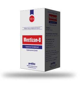 MECTİZAN -B BİLEŞİMİ Kırmızı renkli, berrak steril çözeltinin her ml.si 10 mg ivermektin içerir. FARMAKOLOJİK ÖZELLİKLERİ Bir Avermektin türevi olan İvermektin Streptomyces avermitilis'in fermentasyon ürünüdür.Sentetik bir kemoterapötiktir. İvermectin en az %80 oranında 22-23 dihidroavermektin Bia ve en çok %20 oranında 22-23 dihidroavermektin Bib komponentlerinden kuruludur. İvermektin, parazitlerin motorik ganglion sinapsislerinde (nematodlar) veya nöyromuskuler son plaklarda (artropodlar) Gama Amino Butirik Asit (GABA) salgısını artırmak suretiyle klor (CI-) kanallarını açık tutarak motorik sinir impulsunun geçişini önler; parazit felç olur ve ölür. Buna karşılık, ivemectin memeli hayvanlarda kan/beyin bariyerini aşıp merkezi sinir sistemi içinde yer alır GABA-nerjik sinirlere yeterince nüfuz edemediği için, konak hayvana zarar vermeksizin parazitleri öldürür. Deri altı uygulamada maksimal plazma konsantrasyonuna erişme zamanı ortalama 1.3 gün, plazma eliminasyon yarı ömrü koyunlarda ortalama 3.5 gün, sığırlarda 8 gündür. Plazma proteinlerine bağlı olarak taşınır. Dağılım hacmi yüksektir. Beyin-omurilik sıvısı hariç bütün dokulara, vücut sıvılarına nüfuz eder. Yağ dokularında depolanarak yavaş yavaş salındığı ve elimine edildiği için parazit türlerine göre 2-4 hafta arasında değişen kalıcı etkisi vardır. Esas olarak safra salgısı ile ve çok düşük oranda da idrarla atılır. Atılan maddenin %90 dan fazlası metabolize olmamış ana bileşiktir. ÖZEL KLİNİK BİLGİLER VE HEDEF TÜRLER İÇİN UYARILAR Nokra etkenlerinin omurilik göçü sırasında uygulanmamalıdır. İlk defa meraya çıkan genç hayvanlara, meraya çıkışı takip eden 3 üncü, 8 inci ve 13 üncü haftalarda olmak üzere 3 uygulama yapıldığında o yılın mera mevsiminde en iyi sonuçlar alınabilir. Gebelikte Kullanım : Tavsiye edilen kullanım şeklinde gebeler için güvenlidir. İSTENMEYEN ETKİLER Deri altı enjeksiyonu takiben enjeksiyon bölgesinde yumuşak doku şişliklerine nadir olarak rastlanabilir. Bu reaksiyonlar herhangi bir müdahaleye gerek kalmadan kendiliğinden iyileşir. İLAÇ ETKİLEŞİMLERİ İvermektin 'in diğer ilaçlarla geçimsizliğine dair bir bilgi bulunmamaktadır. DOZ AŞIMINDA BELİRTİLER, TEDBİRLER, ANTİDOT Tolerans sınırı geniştir (buzağı-kuzu en çok 5 kat, erişkinler 10-20 kat).Doz aşımında, mydriasis, çeşitli derecelerde depresyon, kaslarda gevşeme, parezis, ataksi, dil ve dudak tonusu azalması, salya akıntısı, yerde boylu boyunca uzanmış halde yatma, koma hali gibi merkezi sinir sistemi ile ilgili semptomlar görülür. Bilinen bir antidotu yoktur. GIDALARDA İLAÇ KALINTI UYARILARI İlaç kalıntı arınma süresi (i.k.a.s.):Tedavi süresince ve son ilaç uygulamasından sonra eti için yetiştirilen sığırlar 35 gün, koyunlar 42 gün geçmeden kesime gönderilmemelidir. İnsan tüketimi için süt elde edilmekte olan sağmal inek ve koyunlara uygulanamaz. KONTRENDİKASYONLARI Collie ırkı köpeklerde ölüme sebep olabileceğinden kullanılmamalıdır. Kas içi ve damar içi yollarla kullanılmamalıdır. GENEL UYARILAR Kullanmadan önce ve beklenmeyen etki görüldüğünde veteriner hekime danışınız. Çocukların ulaşamayacağı yerlerde bulundurunuz. Gıda maddelerinden uzak tutunuz. Sadece hedef türlerde kullanılmalıdır. UYGULAYICININ ALMASI GEREKEN ÖNLEMLER VE HEKİMLER İÇİN UYARI İlaç kullanılırken sigara içilmemeli ve yemek vb. yenilmemelidir. İlaçla temasdan kaçınınız ve kullandıktan sonra ellerinizi yıkayınız. MUHAFAZA ŞARTLARI VE RAF ÖMRÜ Kendi ambalajı içinde, 250C yi aşmayan oda ısısında (15-250C) muhafaza ediniz. Direkt güneş ışınlarından koruyunuz. Raf ömrü imal tarihinden itibaren 2 yıldır. İlk kullanımdan itibaren, asepsi-antisepsi kurallarına uyulmak ve belirtildiği şekilde muhafaza edilmek koşulu ile 6 ay etkisini korur. KULLANIM SONU İMHA, HEDEF OLMAYAN TÜRLER İÇİN UYARI İvermektin, balıklar ve suda yaşayan diğer canlılar için toksik olduğundan, kullanılmış ilaç şişelerini sulara karışmamasına dikkat ediniz. Raf ömrü dolmuş, açılmış veya saklama şartlarına uyulmadan uzun süre bekletilmiş olan ilaç, iç ambalajı (şişesi) ile birlikte imha edilmelidir. TİCARİ TAKDİM ŞEKLİ Karton kutu içinde; 20 ml, 50 100 ve 250 ml'lik renksiz cam şişelerde arzedilir. |