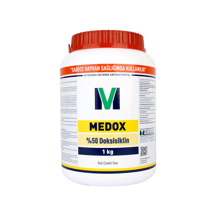 Bileşimi: Farmakolojik Özellikleri: Doksisiklinin etkili olduğu bakteriler aşağıdaki gibidir; Kazanılmış direnç nedeniyle Staphylococci, Enterococci, Enterobacter sp., Enterobacteriaceae familyasına dahil Enterobacter sp., E.coli, Klepsiella sp., Proteus sp., Salmonella sp., Anaerob bakterilerden Bacteroides sp. ve Clostridium sp.’ye etkisi değişkendir. Mycobacterium sp., Proteus vulgaris, Pseudomonas aeroginosa, Serratia sp., Mycoplasma bovis ve M. hyopneumoniae tetrasiklinlere dirençli kabul edilir. Oral yolla uygulandığında genç ruminantlarda ortalama 2-8 saat içinde, kanatlılarda ise 12 saatte maksimum kan konsantrasyonuna ulaşır ve etkin düzeyini ortalama 6-12 saat korur. Biyoyararlanımı ortalama %80-90’dır. Yağ/su dağılım katsayısı yüksek olduğundan vücutta çok geniş bir dağılım gösterir. Doksisiklin renal klirensi en düşük ve biyolojik yarı ömrü en uzun tetrasiklin türevi olup, mikrobiyolojik olarak inaktif formda dışkı ile atılır. Endikasyonları: Buzağı:Colibacillosis, Colisepticemia, Chlamydiasis, Pasteurellosis, diğer solunum ve sindirim sistemi enfeksiyonları, omphalitis, poliarthiritis Uygulama Şekli ve Dozu: Tavuk ve hindilerdeise 20 mg/kg canlı ağırlık/gün dozunda, pratik olarak her 250 kg canlı ağırlık için günde 10 gram toz kullanılır. Gerekli olan miktar hayvanların günlük içme sularına karıştırılarak kullanılır. İlaçlı suyun uygulanmasından 2-3 saat kadar önce hayvanların susuz bırakılması tavsiye edilir. İlaçlı su hergün taze olarak yeniden hazırlanmalıdır. |