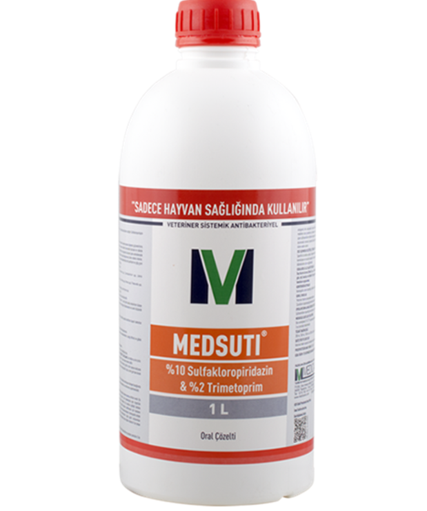 MEDSUTI Oral Çözelti, dengeli oranlarda sulfakloropiridazin sodyum ve trimetoprim karışımı esasına dayanan güçlendirilmiş bir sülfonamid kombinasyonudur. Kombinasyonda yer alan sulfakloropiridazin sodyum bakteri hücresinde bulunan ve nükleik asit sentezi ile hücre çoğalması için gerekli olan folik asit biyosentezini, dihidrofolik asit yapısında bulunan para-aminobenzoik asit molekülünün yerine geçerek, trimetoprim ise dihidrofolik asidin tetrahidrofolik aside dönüşümünü bloke ederek önlerler. Böylece, duyarlı patojen bakterilerde sinerjistik tipten bakteriostatik ve bazı durumlarda bakterisidal etki şekillenir ve çoğu gram pozitif ve gram negatif bakterilere karşı geniş bir antibakteriyel spektrum sağlanır.