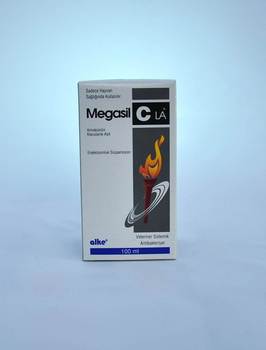 Megasil – CLA Enjeksiyonluk Süspansiyon, sığırlarda, gram-pozitif ve gram-negatif bakterilerin neden oldukları enfeksiyonların tedavisi amacıyla klavulanik asit ile güçlendirilmiş amoksisilin kombinasyonu esasına göre hazırlanmış steril enjeksiyonluk üründür. Etken maddelerden amoksisilin etkinliğini, hızla gelişme ve çoğalma aşamasında olan duyarlı patojen bakterilerde, öncelikle peptidoglikan zincirinin sentezinde görevli enzimlerin etkinliğini inhibe ederek peptidoglikan zincirinin ve buna bağlı olarak da hücre duvarının temelini oluşturan murein maddesi sentezini engelleyip, hücre duvarı sentezini bozmak suretiyle etkisini gösterir. Hücre duvarı bütünlüğü bozulan bakteriler, sferofor veya L şekline dönüşmek suretiyle parçalanarak ölüme sürüklenir. Klavulanik asit ise, yapısal yönden penisilinlerin bileşiminde bulunan, ß-laktam halkasıyla yakından ilişkilidir ve bir çok yönden aynı halka sistemine benzer. Belirtilen yapısal özelliği sayesinde farklı türlerden patojen bakterilerce sentezlenerek salıverilen ß-laktamaz enzimini seçkin bir şekilde ve dönüşümsüz olarak inhibe eder. Amoksisilin ile kombine halde kullanılan klavulanik asit, in vitro ve in vivo ortamlarda ß-laktamaz enzimi aracılığıyla dirençli hale gelen patojen bakterilerde aynı enzimi hızla ve dönüşümsüz bir şekilde inhibe etmek suretiyle dirençli bakterileri amoksisilinin öldürücü etkisine karşı duyarlı hale getirir. Megasil – CLA Enjeksiyonluk Süspansiyon, geniş bir antibakteriyel spektrum sergiler. Bu kapsamda; Staphylococcus sp. (beta-laktamaz salgılayanlar dahil), Streptococcus sp., Corynebacterium sp., Clostridium sp., Bacillus anthracis, A.bovis ve Peptostreptokoklar gibi gram pozitif bakteriler ile, E. coli suşları (beta-laktamaz salgılayan suşlar dahil), Salmonella sp.(beta-laktamaz pozitifler dahil), Bordetella bronchiseptica, Campylobacter sp., Klebsiella sp., Proteus sp., Pasteurella sp., Fusobacterium necrophorum, Bacteroides sp. (beta-laktamaz salgılayanlar dahil), Moraxella sp., Actinobacillus lignierensi v.b. gram negatif bakteriler bulunur. Megasil – CLA Enjeksiyonluk Süspansiyon enjeksiyon sonrası hızla emilerek serumda 1 – 3. saatler arasında pik konsantrasyona erişir. Böbrek, idrar, karaciğer ve safrada yüksek konsantrasyonlara ulaşır. Akciğer, deri, yağ ve kas dokusundaki konsantrasyonları ise nispeten daha düşüktür. Vücuttan başlıca idrar ve safra yoluyla atılır.