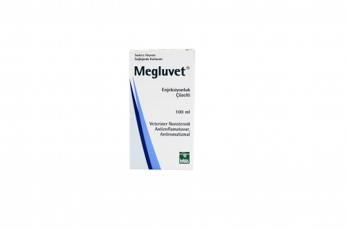 Ticari Takdim Şekli : Karton kutu içinde 100 ml ve 250 ml amber renkli Tip II flakon, gri renkli bromobutil standart tıpa ve mavi flip-off kapakla kapatılmış olarak takdim edilmiştir. Etkin Madde : Her ml’sinde 50 mg fluniksin baza eşdeğer 82,95 mg fluniksin meglumin ve koruyucu olarak 5 mg fenol bulunur. Kullanım ŞekliMegluvet Enjeksiyonluk Çözelti; renksiz, berrak ve kokusuz steril enjeksiyonluk çözelti halinde olup Veteriner Nonsteroid Antienflamatuvar, Antiromatizmal'dir. KULLANIM YERİ / ENDİKASYONLAR Ürün antienflamatuvar, analjezik, antipiretik ve antiendotoksik etkilere sahip olup: UYGULAMA ŞEKLİ VE DOZU Veteriner hekim tarafından başka şekilde tavsiye edilmediği takdirde: |
