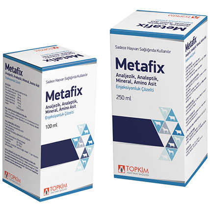 BİLEŞİMİ Her ml'si FARMAKOLOJİK ÖZELLİKLERİ: Metiyonin protein sentezinde ön madde olarak yer alan bir kükürtlü amino asittir. Ayrıca birçok biyokimyasal reaksiyona katılarak protein yapısındaki çeşitli ara ürünlerin üretilmesinde rol alır. Organizmada özellikle hepatotoksik maddelerin uzaklaştırılmasında antioksidan aktiviteye sahiptir. Metiyonin içerdiği kükürt aracılığı ile ve şelat yapabilme kapasitesi ile serbest radikallerin karaciğerden uzaklaştırtmasını sağlayarak karaciğerin korunmasını sağlamaktadır. Metamizolepirazolongrubundan.steroidolmayan bir yangı giderici maddedir. Daha baskın olan ağrı kesici ve ateş düşürücüetkisininyanı sıra spazm çözücü ve antiromatizmal etkilere de sah iptir. Analjezik etkisini MSS'deki ağn merkezlerinin ağn algılama eşiğini yükselterek gösterir. Yumuşak ve çizgili kas liflerinde ağn, travma veya yangıdan kaynaklanan spastik kontraksiyonlan çözerek spazmolitik özellik gösterir. Antipiretik etkisi çevresel damar genişlemesi ile ısı kaybının artması esasına dayanır ve ateşli hastalıklarda belirgin bir şekilde görülür. Yangılı bölgedeki damar geçirgenliğinin azalması dolayısıyla bölgedeki eksudasyon birikimi de azalır. Bölgesel sıvı içeriğinin hızla emilmesi antiromatizmal etkisinin ortaya çıkmasını sağlar. Metamizol parenteral uygulamadan sonra geni; ölçüde metabolıtlenne dönüştürülür. Metabolıtlerinin plazma proteinlerine bağlanma oranı oldukça düşüktür. Uygulanan dozun %90 oranına yakın bölümü 2 saatlik bir yan ömrü takiben genel olarak idrarla vücudu terk eder. Kalsiyum glukonat uzun süreli kalsiyum kaynağını oluşturur. Enjeksiyondan sonra vücut dokularına yayılan kalsiyum hücre dışı sıvılara girer vehızla kemikdokusu ve dişlere katılır. Vücutta bulunan kalsiyumun %99ü kemiklerde yer alır. Kalsiyumun metabolizması sırasında böbreklere ulaşan miktarın %90i renal tübüllerde yeniden emilir. Magnezyum hücre içi sıvıdaki en çok bulunan katyonlardan biridir. Özellikle fosfotransferaz enziminde kofaktör olarak görev alarak hücre içi parçacıldann bir araya getirilmesinde ve makromoleküllerin ribozomlara ve mRNA'ya bağlanmasında önemli rol oynar. Magnezyum nörokimyasal iletimde ve kaslann uyanlmasındaki görevi rle merkezi sinir sistemi ve kalp-damar sistemi için önem taşır. Alınan miktann önemli bir kısmı atılmak üzere böbreklere ulaştığında proksimal tübüllerden geri emilir. Sodyum veya magnezyum hipfosfit şeklindeki fosfor organizmaya verildikten sonra hızla absorbe edilir ve tum vucut dokulanna dağılır. Fosforun temel etkisi ara metabolizmalan stimüle etmesi yoluyla meydana gelmektedir. Fosfor enjeksiyondan sonra 2 saat içinde kan konsantrasyonu en yüksek seviyesine çıkar ve enzimatik reaksiyonlara katılmak üzere organik bileşiklerin yapısına katılır. Parathormon tarafından düzenlenen fosfor seviyesi vücuttaki fazlalık halinde böbrekler yoluyla atılarak dengelenir. Kafein, metilksantin yapısında analeptik bir maddedir. Merkezi sinir sistemini uyararak solunum, dolaşım ve motor etkinliği uyarır. Böbrek glomeruluslannda sirkülasyonu artırarak dokularda depolanan sıvıların yüksek miktarda akışını sağlar. Böyfece diürezis artışına ve ödemlerin iyileşmesine katkıda bulunur. Damar içi uygulanmasını takiben hızfı bir şekilde emilir ve tum vücuda dağılır. Karaciğerde başlıca sitokrom P450 sistemi ile metabolize olur ve idrarla atılır. KULLANIM SAHASI/ENDİKASYONLARI: Sığır ve atlarda enfeksiyonların ve intoksikasyonlann tedavisinde genel durum düzenleyici ve asıl tedaviye destek olarak kullanılır. KULLANIM ŞEKLİ VE DOZU: Kas içi, damar içi veya deri altı verilir. Pratik doz: Uygulama, hastalığın seyrine bağlı olarak 1-3 gün boyunca tekrarlanabilir. ÖZEL KLİNİK BİLGİLER VE HEDEF TÜRLER İÇİN ÖZEL UYARILAR: Damar içi uygulama vücut ısısında ve yavaş yapılmalı ve kalp atıştan takip edilmelidir. Taşikardi veya kalp atışlannda düzensizlik halinde damar içi uygulama durdurulmalıdır. Uygulama sırasında genel asepsi ve antisepsi kurallanna dikkat edilmelidir. Gebelikte kullanımı: Plasentadan geçerek fetuste solunum depresyonuna sebep olabileceğinden dolayı doğuma yakın donemde kullanılması önerilmez. İSTENMEYEN/YAN ETKİLERİ: Damar içi verilme hızının yüksek olması veya çözeltinin vücut ısısından daha duşuk sıcaklıkta olması halinde taşikardi ve kalp atışlannda düzensizlik oluşabilir. İLAÇ ETKİLEŞİMLERİ: Artan miktarlarda kalsiyum, kalp glikozâdleri ve adrenerjıklerın (etilefrin) etkisi artırabilir. Inhal asyon anestetiklerle birlikte kullanımı sonucu kardiak aritmi oluşabilir. Metamizol antikoagulanların etkisini artırabilir, furosemidin etkisini zayıflatabilir. Magnezyum aminoglikozidler ve t et rasi Hinleri n etkisini zay ıflatır ve aminoglikozidler ve inhalasyon anestezi klerin nöromüsküler-blokaj yapıcı etkisini artırır. Kafein, kalp glikozidlerinin etkisini artınr. Damar içi uygulamada diğer ilaçlarla karıştınlmamahdır. DOZ AŞIMINDA BELİRTİLER, TEDBİRLER VE ANTİDOT: Damar içi verilme hızının yüksek olması veya içeriğin ısısının vücut ısısından düşük olması halinde dolaşım bozuklukları, kalp atımlannda bozukluklar, güç solunum, spazmlar, kas zayıflığı gelişebilir. Bu durumlarda damar içi uygulama ve semptomatik olarak müdahale edilir. GIDALARDAKİ İLAÇ KALINTI UYARILARI: İlaç Kalıntı Annma Süresi (İ.K.A.S.): Tedavi süresince veson ilaç uygulanmasından sonra eti için yetiştirilen sığırlar 12 gün geçmeden kesime gönderilmemelidir. Sütü insan tüketimine sunulan ineklerde kullanılamaz. KONTRENDİKASYONLARI: Etkin maddelerin herhangi birine aşırı duyarlı olduğu bilinen hayvanlarda kullanılmamalıdır. Karaciğer ve böbrek yetme