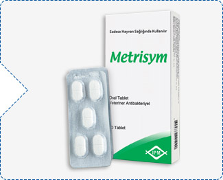 Hedef Tür: Buzağı KULLANIM ŞEKLİ VE DOZU Metrisym Oral Tablet, oral yolla rumeni gelişmemiş buzağılarda kullanılır. Veteriner hekim tarafından başka bir şekilde tavsiye edilmediği takdirde; Buzağılarda oral yolla kullanım: Farmakolojik doz: 5 mg/kg trimetoprim + 25 mg/kg sülfadiazin Pratik doz : 1 Tablet/ 40 kg / canlı ağırlık / gün 'dür Tabletler doğrudan yutturularak veya bir bardak suda (300 ml) eritilerek verilir.Tablet çözündürülmüş suyun tamamı hayvana derhal içirilmelidir. Tedaviye 5 gün devam edilir. Tedaviye 5 günden fazla devam edilmemelidir. Hayvnalarda tableti içirmeden önce su kısıtlaması yapılmasına gerek yoktur. Etkili konsantrasyon süresinin 12 saat civarında olması nedeniyle günlük doz ikiye bölünerek verilmelidir. ANtibiyotik direncinin oluşmaması için hayvan ağırlığının doğru olarak ölçülmesi ve buna göre dozun doğru olarak ayarlanması gerekmektedir. KULLANIM SAHASI
