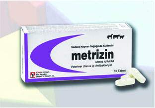 BİLEŞİMİ Her tablet içeriğinde etkin madde olarak 1000 mg sulfamataksazol ve 200 mg trimetoprim yanında başlıca yardımcı madde olarak 2000 mg üre, 200 mg kollidon , 580 mg laktoz monohidrat mevcuttur. ENDİKASYONLARI İnek, kısrak ve koyunlarda duyarlı bakterilerin neden olduğu uterus enfeksiyonlarının (metritisler) klinik sağaltımı ile farklı etmenlere bağlı olarak (erken doğum güç doğum, ölü doğum, sezeryan, abortlar, süt humması ve diğer metabolik hastalıklar ile enfeksiyonlar) plasentanın retensiyonu sonucunda gelişen retentio secundinarum olgularının klinik ve koruyucu sağaltımında kullanılır. KULLANIM ŞEKLİ VE DOZU METRİZİN Uterus İçi Tablet, bütün hedef hayvanlarda hijyen kurallarına uyulmak suretiyle uterus içi yolla uygulanır. Sulfametoksazol ve trimetoprimin uterus içi yolla bir defalık farmakolojik sağaltım dozu inek ve kısraklarda 2400 - 4800 mg ve koyunlarda da 1200 - 2400 mg miktarları arasında önerilmektedir. Belirtilen doz düzeylerinin karşılanabilmesi için bir defada uterus içi yolla inek ve kısraklara 2-4 tablet ve koyunlara da 1 -2 tablet uygulanması yeterlidir. Gerekli görüldüğünde aynı dozlardakl İlaç uygulamaları 24 saat aralıklarla 2 kez daha tekrarlanabilir. |