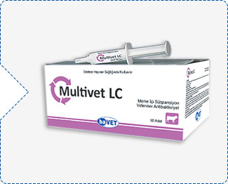 MULTİVET LC meme içi süspansiyon, Laktasyondaki ineklerde Penisilin, Streptomisin ve Neomisin’e duyarlı Streptoccocus spp., Staphylococcus spp., Klebsiella ve E.coli gibi bakteriler tarafından meydana getirilen akut ve subakut klinik mastitislerin tedavisinde ve içeriğindeki Prednizolon ile de oluşan yangı ve ağrının giderilmesinde kullanılır. İLAÇ KALINTI ARINMA SÜRESİ
