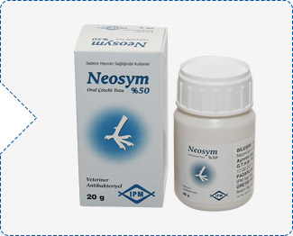 Hedef Tür: Tavuk KULLANIM ŞEKLİ VE DOZU Sağaltım dozu hayvan türüne göre değişmeksizin 10 mg/kg'.dır tavuklarda 1000 kg canlı ağırlığa 20 g Neosym %50 Oral Çözelti Tozu suda eritilerek 3 ya da 5 gün süreyle kullanılır. KULLANIM SAHASI