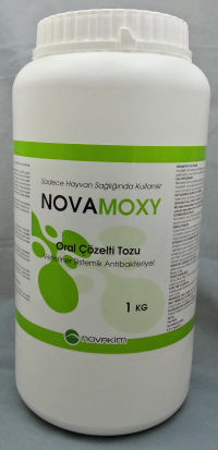 BİLEŞİMİ Beyaz, krem renkli tozun her gramı 500 mg amoksisilin baza eşdeğer amoksisilin trihidrat içermektedir. KULLANIM SAHASI VE ENDİKASYONLARI NOVAMOXY Oral Çözelti Tozu etçi tavuk ve hindilerde duyarlı bakterilerin neden olduğu Kolibasillosis, Pullorum, Tifo, Paratifo, hindilerin hava kesesi yangısı, Enfeksiyöz Koriza, Listeriosis’in sağaltımında; ayrıca viral ve mikoplasma kökenli (CRD ve CCRD) hastalıklarla seyreden ve bakteriler tarafından meydana getirilen ikincil enfeksiyonların sağaltımında kullanılır. KULLANIM ŞEKLİ VE DOZU NOVAMOXY Etçi tavuk ve hindilerde içme suyuna katılarak oral yolla kullanılır. Veteriner hekim tarafından başka şekilde önerilmediği takdirde tedavi dozu 20 mg/kg C.A. gün olup , uygulamaya 3-5 gün devam edilmelidir. Hayvanlar 2 saat susuz bırakılarak günlük verilecek dozun 2-3 saat içinde tüketilmesi sağlanır. Günlük doz aşağıdaki formüle göre hesaplanır: NOVAMOXY Oral Çözelti Tozu(Gram) = Kanatlı sayısı x Ortalama canlı ağırlık(kg) x 20 Günlük olarak kullanılacak ilaç miktarı belirlendikten sonra her 50 gram ilaç 300 ml suya denk gelecek şekilde ön karışım hazırlanır ve bu karışım homojen hale gelinceye kadar karıştırıldıktan sonra ana su tankına aktarılır. Kullanılmayan ilaçlı su 8 saat sonra atılmalıdır. |