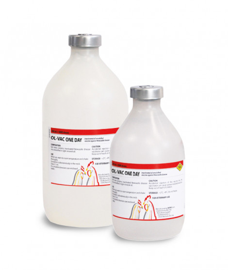OL-VAC ONE DAY, embriyonlu tavukların yumurtalarında yetiştirilen Newcastle hastalığı virüsünün yüksek oranda immünojenik suşu kullanılarak hazırlanmıştır. Virüs etkisiz hale getirildi.