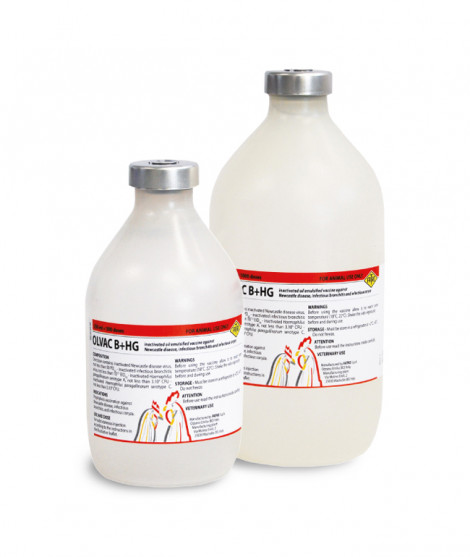 OLVAC B + HG, Newcastle hastalığı, Bulaşıcı Bronşit ve Haemophilus paragallinarum serotip A ve C'nin yüksek oranda immünojenik antijenlerinden üretilen ilişkili bir aşıdır.