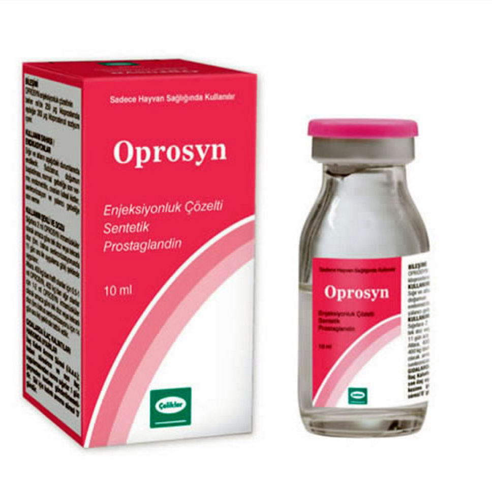 BİLEŞİMİ Oprosyn Enjeksiyonluk Çözelti beher ml’de 250 µg kloprostenol’e eşdeğer 263 µg kloprostenol sodyum içerir. ENDİKASYONLAR Sığırlarda; faaliyetleri iyileştirmek için rutin kullanım Kısraklarda; KULLANIM ŞEKLİ VE DOZU Oprosyn Enjeksiyonluk Çözelti, sadece kas içi enjeksiyon şeklinde uygulanır.