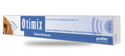 OTIMIX BİLEŞİMİ Açık sarı renkli merhemin her 1 gramı Neomisin ( sulfat halinde ) 3.500 IU Nistatin 100.000 IU Triamsinolon asetonid 1 mg Permetrin 10 mg içerir. FARMAKOLOJİK ÖZELLİKLERİ Neomisin sülfat: Aminoglikozit yapılı bir antibakteriyeldir. Neomisinin topikal formulasyonları veteriner hekimlikte kulak, göz merhemi ya da damla şeklinde yaygın olarak kullanılır. Neomisin gram negatif aerobların çoğuna ve bazı stafilokok suşlarına karşı etkilidir. Gram pozitiflere karşı etkisi zayıftır. Nistatin: Poliyen antifungal bir antibiyotiktir. Geniş spektrumlu antifungal aktiviteye sahiptir. En çok mayalara özellikle Candida spp ve aynı zamanda Pityrosporum, Cryptococcus ve Dermatophytes etkilidir. Aspergillus, Trichophyton ve Micosporum spp gibi mantarlara da etkilidir. Triamsinolon asetonid: Hidroksiprednizolon florlu türevidir. Sentetik bir glukokortikoidtir ve hidrokortizondan 4 - 5 kez daha güçlüdür. Antiinflamatuvar etkisi metil prednisolon kadar güçlüdür. Diğer özellikleri hidrokortizona benzer. Kedi ve köpeklerdeki otitis externa semptomlarına karşı antiinflamatuvar, antialerjik ve antiproliferatif olarak etkir. Permetrin: Dogal pietrinlerin sentetik bileşikleri olan Piretroidler sınıfından insektisit ve akarisid etkili bir maddedir. ÖZEL KLİNİK BİLGİLER VE HEDEF TÜRLER İÇİN UYARILAR Özellikle kedilerde yalamak suretiyle merhemin oral yolla alınmasını önlemek amacıyla kıllara bulaştırılmaması gerekmektedir. Gebelikte kullanımı: Reprotoksisite ve teratojenik etkileri laboratuar hayvanlarında gösterilmiştir. Bu konuda hedef türlerde yeterli araştırma yapılmadığından ürünün gebelikte ve laktasyondaki hayvanlarda kullanımı tavsiye edilmez. İSTENMEYEN YAN ETKİSİ Uygulamayı takiben hafif irritasyonlar meydana gelebilir. Eğer irritasyon tedavi boyunca sürekli ve kötüye gidiyorsa tedavi durdurulmalıdır. İLAÇ ETKİLEŞİMLERİ Diğer ilaçlarla bir geçimsizliği gösterilmemiştir. DOZ AŞIMINDA BELİRTİLER, TEDBİRLER, ANTİDOT Kulaklarında hastalık görülmeyen kedi ve köpeklerdeki doz aşımı çalışmalarında uygulama dozunun 4 katı tavsiye edilen sürenin iki katı uygulandığında hafif irritasyonlara sebep olduğu görülmüştür. Kedilerde bazen tedavi sona erdikten sonra normale dönen ALT ve AST'da artış görülür. GIDALARDA İLAÇ KALINTI UYARILARI Gıda değeri olan hayvanlarda kullanılmaz KONTRAENDİKASYONLARI Kulak zarının bütünlüğünün bozulduğu hayvanlarda kullanılmaz. 1.5 kg'ın altındaki kedilerde kullanılmaz GENEL UYARILAR Kullanmadan önce ve beklenmeyen etki görüldüğünde veteriner hekime danışınız. Çocukların ulaşamayacağı yerde bulundurunuz. UYGULAYICININ ALMASI GEREKEN ÖNLEMLER VE HEKİMLER İÇİN UYARI Uygulamadan sonra ellerinizi yıkayınız. Göze teması halinde hemen bol su ile yıkayınız. Deriye teması halinde hemen bol sabunlu su ile yıkayınız. Yanlışlıkla yutulması halinde doktora başvurunuz ve kutu veya prospektüsü doktora gösteriniz. İçeriğinde bulunan maddelere duyarlılığı olan insanlar ürün ile temastan kaçınmalıdır. MUHAFAZA ŞARTLARI VE RAF ÖMRÜ Oda sıcaklığında ( 15-25 C) saklanır. Raf ömrü imal tarihinden itibaren 24 aydır. Açıldıktan sonra 28 gün içerisinde tüketilmelidir. TİCARİ TAKDİM ŞEKLİ 10 g ve 30 g'lık polietilen tüplerde karton kutu içerisinde satışa arzedilir. |