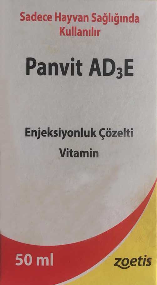 Panvit AD3E Bileşimi: Panvit AD3E her ml’sinde 500,000 IU Vitamin A (propiyonat olarak), 50,000 IU Kolekalsiferol (Vitamin D3) ve 50 mg a-tokoferol (E vitamini) asetat içeren sarı renkli, berrak, steril, su bazlı enjeksiyonluk çözeltidir. FARMAKOLOJİK ÖZELLİKLERİ A vitamini uygulanmayı izleyen 3-5 saat içinde plazma pik konsantrasyonuna ulaşır ve baslıca karaciğerde depolanır. Metabolize olduktan sonra idrar ve gaita ile atılır. Vitamin A kemik ve kas dokusunun gelişimi, görme ve üreme etkinliklerinin arttırılmasını sağlar. D vitaminin büyük bölümü enjeksiyondan sonra, özellikle adipoz dokusuna olmak üzere karaciğere, böbreğe, pankreasa, akciğere, dalağa, kaslara, deriye transfer edilmektedir. Koyunlarda D3 vitamininin intramüsküler dozundan sonra, plazma konsantrasyonu yaklaşık 24 saatte maksimuma çıkmaktadır ve bunu izleyen 22 gün içinde seviye yavaşça düşmektedir. Büyükbaş hayvanlarda, benzer şekilde intramüsküler D3 vitamini uygulaması 1 günde pik serum konsantrasyonları oluşturmaktadır ve bunun ardından 33. güne kadar saptanabilen seviyeler görülmektedir. D vitamini kalsiyum-fosfor mekanizmasının düzenlenmesinden sorumludur. Plazma farmakokinetik çalışmaları koyunlara tekrarlanan dozun verilmesinden ya da tek intramüsküler enjeksiyondan sonra, D-a-tokoferol, L-a-tokoferol ya da DL-a-tokoferoldan daha yüksek doku yararlanımı vermiştir ve tokoferol de tokoferol asetattan daha yüksek bir yararlanım sunmuştur. Doku konsantrasyonları, tek bir intramüsküler dozdan sonra 240 ve 360 saat arasında artmaya devam etmiştir. E vitamin antioksidan özelliğe sahiptir. KULLANIM SAHASI ve ENDİKASYONLAR Sığır ve koyunlarda Vitamin A, D3 ve E eksikliklerinin önlenmesi ve tedavisi için kullanılır. Panvit AD3E KULLANIM ŞEKLİ VE DOZUSığır ve koyunlara kas içi yolla uygulanır. Dozaj Tedavinin her 2-3 ayda tekrarlanması önerilir. Gerek duyulduğu durumlarda uygulamalar daha kısa aralıklarla yapılabilir. Tedavilerin uygun zamanlanması yas, beslenme, uygulama faktörleri, vb. çeşitli faktörlere bağlıdır. İSTENMEYEN ETKİLER Enjeksiyon uygulanan bölgede küçük lokal reaksiyon ortaya çıkabilir, ancak bu kısa bir süre sonra kaybolur. İLAÇ ETKİLEŞİMLERİBilinen hiçbir ürünle birlikte kullanılmasında sakınca yoktur. DOZ AŞIMI Aşırı dozun uzun süreli uygulandığı durumlarda D3 vitamini, kan damarlarında kireçlenmeye neden olabilir. D3 vitaminin doz aşımından sonra kireçlenmenin gelişme riski yas ve beslenme Ca/P oranı da dahil olmak üzere diğer faktörlerden etkilenecektir. GIDALARDA İLAÇ KALINTI UYARILARI İlaç kalıntı arınma süresi (i.k.a.s): Tedavi süresince ve son ilaç uygulamasından sonra et ve süt için ilaç kalıntı arınma süresi 0 gündür. KONTRENDİKASYONLAR Kedi ve köpeklerde kullanılmamalıdır. Gebelikte Kullanım: Gebe ve laktasyondaki hayvanlarda güvenle kullanılabilir GENEL UYARILAR Kullanımdan önce ve beklenmeyen bir etki görüldüğünde veteriner hekime danışınız. Çocukların ulaşamayacağı bir yerde bulundurunuz. UYGULAYICININ ALMASI GEREKEN ÖNLEMLER VE HEKİMLER İÇİN UYARILAR Uygulamada asepsiye dikkat edilmelidir. Kullanımda steril enjektörler kullanılmalıdır. Enjeksiyon uygulanacak bölgenin temiz olduğuna ve uygulamadan önce iyotla veya alkolle silinmiş olduğuna emin olunmalıdır. MUHAFAZA ŞARTLARI VE RAF ÖMRÜ 25°C’den düşük sıcaklıklarda, ışıga maruz kalmayan bir ortamda muhafaza edilmelidir. Dondurulmamalıdır. Düşük sıcaklıklarda çözelti heterojen bir görünüm alabilir. Normal durumuna gelmesi için kullanımdan önce kademeli olarak ılıtılmalıdır. Raf ömrü imal tarihinden itibaren 24 aydır. İlk kullanıldığı tarihten itibaren 28 gün boyunca etkinliğini korur. TİCARİ TAKDİM ŞEKLİ Amber renkli 50 ml’lik tip il cam siselere sunulmuştur. Bromobutyl lastik tıpa ile kapatılmıştır. |