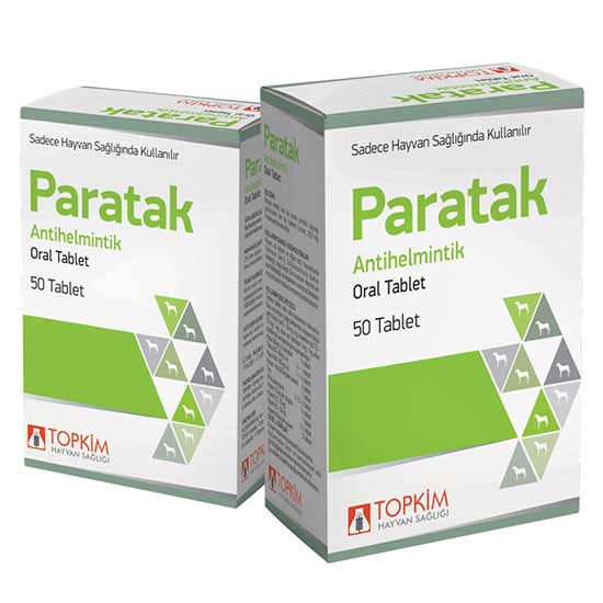 BİLEŞİMİ PARATAK tablet açık sarı-krem renkli tablet olup, oblong şeklindeki her 1 tablet içinde 50 mg Praziquantel, 140 mg Pirantel pamoat, 545 mg Okzantel pamoat mevcuttur. KULLANIM SAHASI/ENDİKASYONLAR PARATAK Oral Tablet köpeklerin sindirim kanalında yaşayan aşağıda isimleri yazıh helmintlerin tedavisi ve kontrolü amacıyla kullanır: Tenyalar (şeritler): Dipylidium carıinum, Echirıococcus granulosus, Taenia multiceps, Taenia taeniaeformis, Taenia psiformis, Taenia ovis ve diğerleri. Askaritler (Yuvarlak solucanlar): Toxacara canis, Toxascaris leonirıa Kancalı kurtlar: Anchylostoma caninum, Uncinaria stenocephala Kamçılı kurtlar: Trichuris vulpis KULLANILIŞ ŞEKLİ VE DOZU PARATAK Oral Tablet, köpeklerin yiyecekleri içine saklanarak yedirme veya doğrudan doğruya yutturulmak suretiyle uygulanır.Veteriner hekim tarafından başka şekilde tavsiye edilmediği takdirde, farmakolojik dozu praziquantel için 5 mg/kg canlı ağırlık, pirantel pamoat için 14 mg/kg canlı ağırlık, okzantel pamoat için 54.5 mg/kg canlı ağırlıktır. Pratik dozu 10 kg vücut ağırlığı için 1 tablettir. 5 kg .a kadar 1/1 tablet |