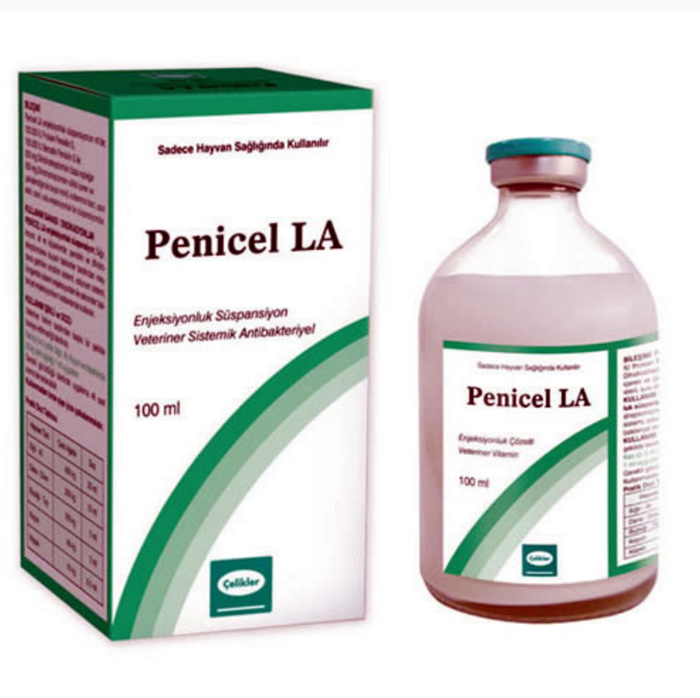 BİLEŞİMİ Penicel LA Enjeksiyonluk süspansiyon ml’de; 100.000 IU Prokain Penisilin G, 100.000 IU Benzatin penisilin G ile 250 mg Dihidrostreptomisin sülfat içerir. ENDİKASYONLAR PENİCEL LA enjeksiyonluk süspansiyon, sığır, koyun, at ve köpeklerde; penisilin ve streptomisine duyarlı bakteriler tarafından meydana getirilen sindirim sistemi, solunum sistemi, ürogenital sistem enfeksiyonları ile sekonder bakteriyel enfeksiyonların tedavisinde kullanılır. KULLANIM ŞEKLİ VE DOZU Veteriner hekim tarafından başka şekilde tavsiye edilmediği takdirde; Farmakolojik doz: Tüm hedef hayvanlar için; Penisilin: 10.000 IU/kg c.a. , Dihidrostreptomisin: 10 mg/kg c.a. Pratik doz: Kas içi (i.m.) yolla tüm hedef türler için 20 kg canlı ağırlık / 1ml’dir.