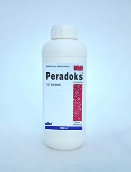 Peradoks %25 Oral Çözelti BİLEŞİMİ FARMAKOLOJIK ÖZELLIKLERI Peradoks %25 oral çözeltinin etkin maddesi, doksisiklin yarı sentetik tetrasiklin derivatıdır. Genel olarak tetrasiklin grubu antibiyotiklerin Gram-pozitif aeroblar (Bacillus sp., Corynebacterium sp., Erysipelothrix rhusiopathia, Listeria monocytogenes ve Streptococci.), Gram negatif bakteriler (Actinobacillus sp., Bordetella sp., Francisella tularensis, Haemophilus sp., Pasteurella multocida, P. haemolytica, Yersinia sp., Campylobacter fetus, Borrelia sp., Leptospira sp. Moraxella bovis), anaeroblar (Actinomyces sp., Fusobacterium sp.,) Mycoplasma sp., Chlamydia sp., Ehrlichia sp., Coxiella burnetti, Ehrlichia, Theileria, Eperythrozoon ve Anaplasma’lara etkisi iyi derecededir. Kazanılmış direnç nedeniyle Staphylococci, Enterococci, Enterobacter sp., Enterobacteriaceae familyasına dahil Enterobacter sp., E.coli, Klebsiella sp., Proteus sp., Salmonella sp., anaerop bakterilerden Bacteroides sp. ve Clostridium sp. ye etkisi değişkendir. Mycobacterium sp., Proteus vulgaris, Pseudomonas aeroginosa, Serratia sp., Mycoplasma bovis ve M. hyopneumoniae tetrasiklinlere dirençli kabul edilir. Etki mekanizması, bakteriyel ribozomların 30-50 S altünitesine bağlanarak protein sentezi inhibisyonuna dayanır. Bakteriostatik etkilidir. Doksisiklin diğer terrasiklin antibiyotiklere göre doksisiklin daha lipofiliktir, yağda iyi çözünür,yüksek oranda proteinlere bağlanır (%90) ve yarılanma ömrü uzundur ( 15 –22 saat). Civcivlere oral yolla 10 mg/kg canlı ağırlık dozda uygulandığında hızlı ve iyi emilir. Pik plazma konsantrantrasyonu 4.47 +/- 0.16 mikrogram/mL ve pik konsantrasyona ulaşma süresi Cmax 1.73 +/- 0.06 saattir.Atılma yarı ömrü kanatlılarda 4.6 saat, buzağılarda 9.8 saattir. Oral biyoyararlılığı %41-73.4 olarak bildirilmiştir. Doksisiklin metabolize edilerek esas olarak gaita ile inaktif metabolitleri halinde atılır. KULLANIM SAHASI/ENDIKASYONLARI KULLANIM ŞEKLİ VE DOZU İSTENMEYEN/ YAN ETKİLER İLAÇ ETKİLEŞİMLERİ DOZ AŞIMINDA BELİRTİLER VE ANTİDOT GIDALARDAKİ İLAÇ KALINTILARI İÇİN UYARILAR KONTRENDIKASYONLAR GENEL UYARILAR UYGULAYICI VE VETERINER HEKIME ÖZEL UYARILAR MUHAFAZA ŞARTLARI VE RAF ÖMRÜ: TICARI TAKDIM ŞEKLI |