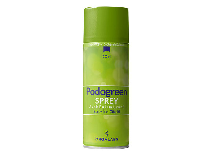 Podogreen Sprey için Çözelti Bileşimi: Karakteristik kokulu, koyu yeşil renkli bir çözeltidir. Kullanım Sahası: Sığır, koyun, keçi, kedi ve köpeklerde ayaklarda, toynak ve tırnaklardaki lezyonlarda bölgeyi dış etkilerden korumak ve doğal iyileşmeye yardımcı olmak için epitelyum koruyucu – fiziksel kapatıcı bir spreydir. Kullanım Şekli: Uygulanan bölgenin belirlenmesi için mavi renkli boya ile işaretlenmiştir. Temizlenen bölgeye günde 2 kez 1-2 saniye süre ile püskürtülerek kullanılmaktadır. |