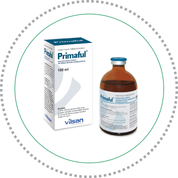 Sığırlarda, Gram (+) ve Gram (-) bakterilerin neden olduğu sistemik ve lokal enfeksiyonlar ile solunum sistemi hastalıklarında, üriner ve genital sistem enfeksiyonları, ayak ve göbek enfeksiyonları ile viral hastalıkların sekonder bakteriyel enfeksiyonları (şap) ve yol vurgununa karşı kullanılır
