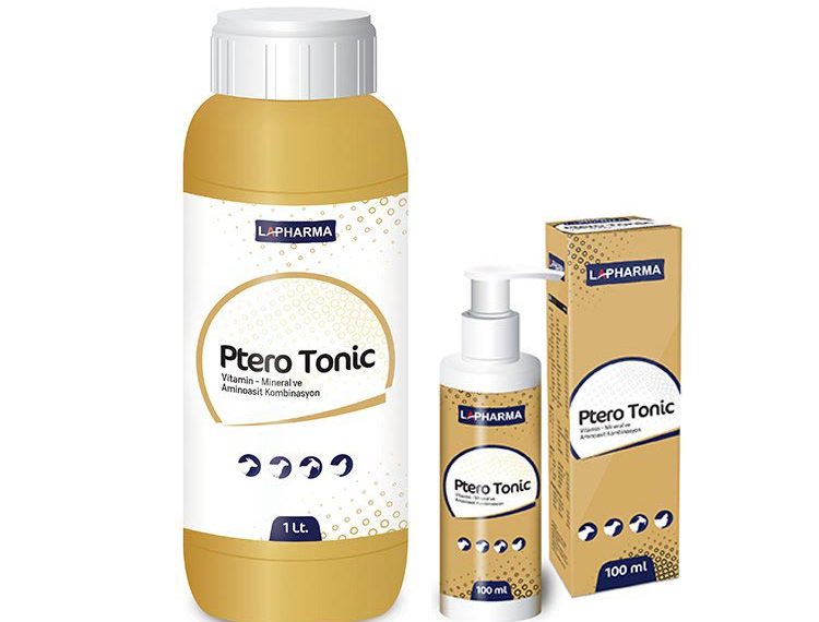 Ptero Tonic Ptero Tonic Kullanım AmacıVitamin ve asitlerin eksikliklerinin giderilmesinde, Hayvanların büyümelerinde gerekli olan elementlerin sağlanmasında, hayvanların gelişimlerini tamamlamalarında, verimlerini, yemden yararlanma oranlarını artırmada, bağışıklık sistemlerini güçlendirmede, atlarda hayvanların koşu ve yarışa hazırlanmalarında ve sonrasında kas ve eklemlerin desteklenmesi amacıyla kullanılır. Kanatlılarda olumsuz çevre ve koşullarında, nakliye aşılama, gaga kesimi ve dalgalı verim dönemlerinde, toksikasyon olaylarında, tüy dökümünde, yumurtlamaya başlama dönemlerinde kullanılır. Kullanım ŞekliSığır, koyun-keçi ve atlarda genel olarak 1 ton içme suyuna 1 lt katılır. Kanatlılarda 1 ton içme suyuna 1-2 lt katılarak 3-5 gün boyunca kullanılır. Pratikte hayvan başına içme suyuna ilave edilerek Sığırlar da: 15-30 ml, Buzağılarda: 3-5 ml Koyun keçilerde 2-4 ml, Kuzu ve oğlaklarda: 1-2 ml uygulanır. Atlarda: 300 ml 7-10 gün boyunca uygulanır, yarış öncesi kullanılan miktar atlarda 100 ml’ye kadar çıkarılır. Hayvan ve sürünün genel durumuna bağlı olarak sığır, koyun ve keçilerde ürünün uygulama süresi veteriner hekim tarafından belirlenebilir. Ticari Takdim Şekli Ptero Tonic, 100 ml – 250 ml – 500 ml – 1L ve 5L’lik plastik şişe ve bidon ambalajlarda sunulmaktadır. Depolama Ptero Tonic, serin rutubetsiz ve güneş ışığı temas etmeyen ortamlarda ağzı kapalı şekilde muhafaza ediniz. BİR İLAÇ DEĞİLDİR, YEM KATKI MADDESİDİR (PREMİKS) TEDAVİ AMACIYLA KULLANILMAZ. UyarılarÇocukların ulaşamayacağı yerlerde muhafaza ediniz.