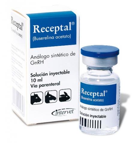 Receptal® Enjeksiyonluk Çözelti BİLEȘİMİ Saydam renkli olan Receptal enjeksiyonluk çözeltinin 1 ml’sinin içinde 0.004 mg buserelin eșdeğeri 0.0042 mg buserelin acetate ve antiseptik olarak da %2 benzil alkol bulunur. FARMAKOLOJİK ÖZELLİKLERİ Receptal, gonadotropin releasing hormon (GnRH) analogu buserelin acetate içeren sentetik bir hormon preparatıdır. Endojen GnRH, sığırların östrus sikluslarının farklı evrelerinde hipotalamustan salgılanır, portal damarlar yolu ile hipofiz ön lobuna geçer ve gonadotropinlerin (FSH, LH) salgılanmasını sağlayarak fizyolojik duruma göre foliküllerin gelișmesini, ovulasyonun gerçekleșmesini ve foliküllerin luteinleşmesini sağlar. Sentetik buserelin içeren Receptal IV veya IM yolla uygulandığında endojen GnRH’a benzer șekilde FSH (Folikül stimüle edici hormon) veya LH (Lüteinleștirici hormon) salgılanmasını sağlayarak tamamen aynı etkiyi gösterir. Ven içine uygulamadan sonra uygulandığı yerden hızla emilerek ön hipofizdeki hedef hücreler tarafından alınır. Buradaki reseptör hücrelere bağlanır ve adenil siklazın aktive olmasına neden olur. Bu enzim intrasellüler siklik AMP miktarının artmasına ve bir dizi zincirleme reaksiyon sonucu LH veya FSH sentezinin bașlamasına neden olur.Yarılanma ömrü ratlarda 3-4.5 dakikadır. Plazma eliminasyonunun hızlı olmasına karşın hormonal aktivite saatlerce sürer. Bu nedenle plazma seviyesi ile gonadotropin salınımı arasında korelasyon bulunmamaktadır. Atılım genelde idrar yoluyladır. KULLANIM SAHASI / ENDİKASYONLAR Receptal, sığırlarda follikül kistleri (nimfomani ile birlikte ya da değil), anöstrus (siklik veya asiklik), ovulasyonun gecikmesi ve follikül atrezisi gibi ovaryumdan kaynaklanan fertilite bozukluklarının tedavisi, ovulasyon induksiyonu, suni tohumlama ve östrus senkronizasyonu çalıșmalarında döl tutma oranının yükseltilmesi, doğumdan sonra erken bir zamanda siklusun bașlatılması, kısraklarda uzamıș veya sürekli östrus gösterenlerde ovaryumlardaki folliküler kistik bozuklukların tedavisi, nonsiklik kısrakların anöstrus tedavisi, ovulasyonun induksiyonu ile ovulasyon ve tohumlama zamanının belirli bir periyot içine alınabilmesi, uzamıș östrus ve sürekli östrus hallerinde döl tutma oranının yükseltilmesi, tavșanlarda tabii ve suni tohumlamada döl tutma oranının yükseltilmesi ve doğumdan sonraki tohumlama için ovulasyon induksiyonu amacıyla kullanılır. KULLANIM ȘEKLİ VE DOZU Receptal tercihen kas içine uygulanır. Ancak ven içine ve deri altına da uygulanabilir. İlacın dozları ve kullanılıș șekli așağıda verilmektedir. İneklerde ovaryumlardaki foliküler kistlerin tedavisinde; Kas içine 5 ml Receptal enjekte edilir. Uygulamadan sonraki 8 gün içinde corpus luteum meydana gelir ve bu sırada kist de luteinize olur ya da regresyona uğrayabilir. Receptal uygulamasından sonraki 10-14 gün içinde yapılacak rektal muayenede, ovaryumlardan biri üzerinde corpus luteum olușmadıysa veya yeniden kist șekillendiyse uygulamanın tekrarlanması gerekir. Receptal uygulamasından yaklașık 20 gün sonra ilk kızgınlık belirtileri ortaya çıkar. Bu defa 2.5 ml Receptal enjekte etmek suretiyle tohumlamada döl tutma oranı yükseltilir. Siklik ve nonsiklik ineklerde anöstrus ve suböstrus tedavisinde 5 ml Receptal enjekte edilir. 10-12 gün içinde inek kızgınlık belirtisi göstermezse, rektal muayene yapılarak ovaryumlar kontrol edilir. Ovaryumlardan birinin üzerinde fonksiyonel bir olușum (corpus luteum) şekillenmediyse 5 ml Receptal enjeksiyonu tekrarlanmalıdır. İlk veya ikinci uygulamadan sonraki 10-12 gün içinde yapılacak rektal muayenede corpus luteum’un mevcudiyeti saptandıysa hayvanın bunu izleyen 10-14 gün içinde kızgınlık göstermesi beklenir. İneklerde ovulasyonun gecikmesi ve folliküler atrezi tedavisinde tohumlama sırasında veya tohumlamadan sonraki 6 saat içinde 2,5 ml Receptal enjekte edilir. Bu sayede 24 saat içinde ovulasyonun meydana gelmesi sağlanır. Sığır suni tohumlamasında döl tutma oranının yükseltilmesi için tohumlama sırasında veya tohumlamadan önceki 6 saat içinde 2,5 ml Receptal enjekte edilir. Bu sayede ovulasyonun arzu edilen zaman içinde meydana gelmesi sağlanır. Doğum sonrası siklusların erken zamanda bașlatılması için doğumdan sonraki 10-14. günler içinde bir kere 5 ml Receptal enjekte edilir. Bu uygulamadan sonraki 24 saat içinde ovulasyon olur ve doğum sonrası düzenli sikluslar bașlar. Böylece, üç hafta sonraki kızgınlıkta ineği tohumlamak mümkün olur. Bu uygulama, özellikle retentio secundinarum ve ovaryumlardan kaynaklanan çeșitli puerperal problemlerin çözümlenmesine, uygulama ile bașlatılmıș olan siklusla doğum sonrasında uterusun normal involusyonunun hızlanmasına ve endometritislerin iyileșmesine yardımcı olur. Kısraklarda ovaryum foliküler kistlerinin tedavisinde 10 ml Receptal enjekte edilir. Uygulamadan 10-14 gün sonra yapılacak rektal muaye nede kistin henüz regresyona uğramamıș olduğu saptanırsa veya kısrakta kızgınlık halinin hala devam etmekte olduğu görülürse, uygulamayı tekrarlamak gerekir Nonsiklik kısraklarda anöstrus tedavisinde 24 saat ara ile iki defa 5 ml Receptal uygulanır. Kısrak 10 gün içinde kızgınlık belirtisi göstermeyecek olursa 11 ve 12. günde olmak üzere, iki defa yine 5 ml dozunda Receptal enjeksiyonu yapılır. Kısrakta ovulasyon induksiyonu için kızgınlık süresi kısa olan kısraklarda kızgınlığın 2. veya 3. gününde, kızgınlık süresi uzun olan kısraklarda ise kızgınlığın 7. veya 8. gününde tek doz halinde, 10 ml Receptal enjekte edilir. Normal olarak, uygulamadan sonraki 24-36 saat içinde ovulasyon meydana gelir. 24-36 saat arasında yapılacak rektal muayenelerde ovulasyonun olmadığı saptanırsa, yeniden 10 ml Receptal enjekte edilir. 