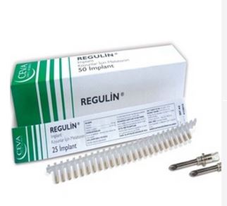 BİLEŞİMİ Bir implant: Melatonin…………...............………..…...…18.0 mg Yardımcı maddeler…………………...……..20.106 mg içerir. ENDİKASYONLARI Koyun ve şişeklerde : Sezondan önce seksüel aktiviteyi başlatır. REGULİN, tüm koyun ırklarında erken dönemde gebelik elde etmek için kullanılan ve üreme performansını arttıran bir üründür . REGULİN, östrus senkronizasyonu sağlayan bir ilaç değildir. KULLANIM ŞEKLİ VE DOZU Deri altı yolla (özel tabancası ile) 25 implant taşıyan kartuşlar özel tabancasına yerleştirilir. Kulak arkasına (kök kısmına) implante edilir. İmplantasyonda kullanılan kanüller her uygulamadan sonra dezenfekte edilmelidir. Koyun ve şişeklerde : Bir implant aşağıdaki resimde gösterildiği gibi uygulanır : 1. Gün : (kuzulamadan 30 hafta önce) koçlar koyunlardan ayrılır. 7. Gün : İmplant uygulanır. 42. Gün (implant uygulamasından 30-40 gün sonra) koç katılır. Seksüel aktivite hemen başlamayabilir ancak 14-21 günlük bir süreden sonra başlar. İlk 14 gün içinde sürüye arama koçları katılarak kuzulamanın daha kısa sürede tamamlanması sağlanabilir. Koç katımından sonraki takriben 25-35. günlerde seksüel aktivite pik noktaya ulaşır. Senkronizasyon İle Yapılan Uygulama (suni tohumlama / elde tohumlama) REGULİN uygulaması ile birlikte fluorogeston emdirilmiş vaginal süngerlerden sonra PMSG uygulanarak östrüs senkronizasyonu yapılır. Bu uygulamalar aşağıdaki sıra ile yapılır. 1. gün: İmplant uygulanır. 18- 28. günler: Fluorogeston emdirilmiş vaginal süngerler uygulanır. 30-40. günler: Sünger çıkarılır ve IM yolla PMSG tatbik edilir. (tavsiye edilen sünger ve PMSG şemasına göre). Süngerlerin çıkartılmasından 55 ± 1 saat sonra suni tohumlama yapılır. |