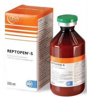 BİLEŞİMİ 1 ml'de: ENDİKASYONLARI Reptopen-S at, sığır, koyun ve köpeklerde penisilin ve streptomisine duyarlı, Gram-pozitif ve Gram- negatif bakterilerin neden olduğu aşağıdaki enfeksiyonların tedavisinde endikedir: -Solunum sistemi enfeksiyonları (pnömoni, bronşit, trakeit) -Gastrointestinal sistem enfeksiyonları (enterit, diyare) -Ürogenital sistem enfeksiyonları (sistit, metritis) -Deri ve yumuşak doku enfeksiyonları (Omfalitis, yaralar, abseler, ayak enfeksiyonları, eklem yangıları) -Postoperatif enfeksiyonlar KULLANIM ŞEKLİ VE DOZU Veteriner hekim tarafından başka şekilde tavsiye edilmediği takdirde (günde 10.000 IU benzil penisilin prokain ve 10 mg dihidrostreptomisin/kg canlı ağırlık hesabıyla); 3 gün süreyle, kas içi (IM) veya deri altı yol (SC) ile 24 saatte bir ; Sığırlarda ve atlarda : Yetişkinlerde: 100 kg c.a. 5 ml : Gençlerde : 100 kg c.a. 8 ml Özellikle atlarda aynı bölgeye tekrarlayan uygulamalardan kaçınılmalıdır. |