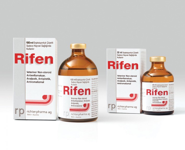 Rifen Enjeksiyonluk Çözelti Veteriner Non-steroid Antienflamatuar, Analjezik, Antipiretik, Antiromatizmal BİLEŞİMİ Renksiz ve berrak bir çözelti olan Rifen, 1 ml’sinde 100 mg ketoprofen ihtiva eder. FARMAKOLOJİK ÖZELLİKLERİ Ketoprofen, non-steroid antienflamatuar bir ilaçtır. (NSAID). Anti-enflamatuar, antiromatizmal, anti-piretik ve analjezik, antibradikinin özellikler taşır. Ketoprofen, cyclooksijenaz’ın inhibasyonuna sebep olur ve böylece prostaglandinlerin, prostasiklinlerin, Tromboksan A2’nin sentezini engeller. Düşük oranda ketoprofen, aras¸ idonik asit basamaklarının bir bölümü olan lipooksijenaz yolunu inhibe ederek, hücre ortamlı enflamasyonu azaltır ve bu sayede doku hasarını azaltır. I.M. uygulanmasından sonra, hemen absorbe edilir ve 30-60 dakika sonra maksimum plazma konsantrasyonuna ulaşır. Bio-yararlanımı % 70-90 dır. Plazma yarı ömür uygulama yoluna bağlı olup I.V. uygulamada 1 saat ve I.M. uygulamada ise 3 saattir. Ketoprofen kısmen glukuronidize metaboliteler halinde ve bir kısmı da metabolize olmadan idrar ile dış arı atılır. KULLANIM SAHASI / ENDİKASYONLARRifen enjeksiyonluk çözelti; at, sığır, domuzlarda kullanılır. At: Travmatik topallık, arthrosis, arthritis, osteitis, tendinitis, bursitis, podotrochlitis, laminitis, myositis, cerrahi müdahaleden sonra, yumuşak doku şişliklerinde, kısaca kas ve iskelet sisteminin ağrılı romatizmal sorunlarında ve solunum hastalıklarında kullanılır. Ayrıca atlarda kolik’in semptomatik tedavisinde kullanılır. Sığır: Solunum hastalıkları, mastitis, meme ödemi, kas ve iskelet sistem hastalıkları (örnek: topallık, arthritis, yaralanmalar), güç doğum, doğum sonrası yatıp kalkamama durumlarında kullanılır. Bakteriyel enfeksiyon sonucu geliş en endotoksinlerin zararlı etkilerini baskılanmak için kullanılır. Domuz: Aşağıdakilerin analjezik, antiflojistik ve antipiretik terapisinde kullanılır: Solunum hastalıkları, MMA-Sendrom (mastitis, metritis, agalaktia). KULLANIM ŞEKLİ VE DOZUAt (yavaş , I.V., I.M.) 1-3 gün boyunca 1 ml/45 kg c.a. Rifen’e tekabül eden 2.2 mg/kg/gün ketoprofen. Kas ve iskelet sistemindeki sorunlarda, 3-5 gün uygulanmalıdır. Kolik’in semptomatik terapisi için tek enjeksiyon yeterlidir, daha fazla enjeksiyona gerek duyulması halinde, detaylı bir klinik inceleme yürütülmelidir. Sığır (yavaş , I.V., I.M.) 1-3 gün boyunca 3 mg/kg/gün ketoprofen, yani 3 ml/100 kg vüc.ağ. Rifen. Kas ve iskelet sistemindeki sorunlarda, 3-5 gün uygulanmalıdır. Domuz (I.M.) 3 ml/100 kg /gün Rifen. ÖZEL KLİNİK BİLGİLER VE HEDEF TÜRLER İÇİN ÖZEL UYARILAR6 haftalıktan küçük hayvanlara uygulamanın güvenliği kanıtlanmadığı için tavsiye edilmez. Laktasyondaki hayvanlar için kullanılmasında bir sakınca yoktur. Gebelikte kullanım: Sığırlarda gebelik süresince kullanılmasında herhangi bir sakınca yoktur. Gebe kısraklarda kullanılması, gebelik ve fertilite üzerine etkileri araştırılmadığından dolayı tavsiye edilmez. İSTENMEYEN / YAN ETKİLER Genelde ketoprofen iyi tolere edilir. Nadir olarak, gastrointestinal bozukluklar (ülser) görülür. Domuzlarda, tekrarlanan uygulamadan sonra, iştahta geçici düşüş görülür. intramuskular yoldan uygulanması lokal reaksiyonlara sebep olabilir. İLAÇ ETKİLEŞİMLERİ Ketoprofen, diğer NSAID’ler, diuretikler ve antikoagulanlar ile beraber uygulanmamalıdır. Ayrıca kortikosteroid ve nefrotoksik ilaçlar ile beraber kullanılması sakıncalıdır. DOZ AŞIMINDA BELİRTİLER, TEDBİRLER Gastrointestinal sistem semptomlarının şiddetinde artma riski vardır. GIDALARDAKİ İLAÇ KALINTILARI HAKKINDA UYARILARİlaç Kalıntı Arınma Süresi (İ.k.a.s.); I.M. uygulamada 4 gün, I.V. uygulamada sığırlar 1 gün geçmeden kesime gönderilmemelidir. Sığır sütünde ilaç kalıntı arınma süresi ‘’0’’ gündür. KONTRENDİKASYONLAR Şiddetli böbrek bozukluğu olanlarda, kanama bozuklukları görülen hayvanlarda, anemik durumlarda, ketoprofen veya diğer NSAID’lere karşı hipersensitivitede kullanılmaz. GENEL UYARILAR Kullanmadan önce ve beklenmeyen bir etki görüldüğünde veteriner hekime danışınız. Çocukların ulaşamayacağı yerlerde bulundurunuz. UYGULAYICININ ALMASI GEREKEN ÖNLEMLER VE HEKİMLE İÇİN UYARILAR Kazayla uygulayıcının kendisine enjekte etmesi durumunda, prospektüsle birlikte bir hekime başvurulmalıdır. MUHAFAZA ŞARTLARI VE RAF ÖMRÜ Oda ısısında ve ışıktan korunarak muhafaza edildiğinde raf ömrü 3 yıl’dır. Şişe açıldıktan sonra 28 gün içinde tüketilmelidir. Bu süre içinde buzdolabında ışıktan korunarak muhafaza edilmelidir. TİCARİ TAKDİM ŞEKLİ Karton kutularda 50 ml veya 100 ml amber renkli cam şişelerde, lastik tıpa ve alüminyum kapşonla kapatılarak takdim edilmiştir. |