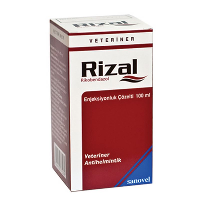 RİZAL BİLEŞİMİ Rizal Enjeksiyonluk Çözelti sarı renkli steril pirojensiz bir çözelti olup beher ml’sinde 100 mg rikobendazol içerir. FARMAKOLOJİK ÖZELLİKLERİ RİZAL Enjeksiyonluk Çözelti’nin bileşimindeki rikobendazol benzimidazol karbamat türevi geniş spektrumlu bir antihelmintiktir. Rikobendazol aktivite spektrumuna giren parazitlerin mikrotübulinlerinin polimerizasyonunu inhibe etmek sureti ile enerji metabolizmasını bozar ve parazitin açlıktan ölümüne neden olur. Parazit mikrotübulinlerinin olmamasından dolayı bağırsak hücrelerinde gıda absorbsiyonu yapamaz. Glikojenin azalması sonucu uygulamadan 24 saat sonra açlıktan ölür. Oral uygulama sonrası rikobendazol bağırsaklardan süratle emilerek karaciğerde metabolize olur ve 2-amino–sulphone metaboliti ile 3-4 adet tam olarak identifiye edilemeyen major metabolitleri oluşturur. Oral uygulamada plazmada pik konsantrasyona 20 saatte ulaşır. Benzimidazol grubu içindeki diğer moleküllere göre oral uygulamadan sonra emilimi daha hızlıdır. Uygulamadan 9 gün sonra idrarda rikobendazol metabolitlerinin %47 oranında tespit edildiği bildirilmiştir. Rikobendazolün sistemik biyoyararlanımı koyunlarda subcutan (SC) uygulamada (%96), intraruminal (İR) uygulamadakinden (% 27) daha yüksektir. SC uygulama sonucu elde edilen Cmax (2,09±0.24 µg/ml), İR uygulamadan elde edilenden (0.44±0.10 µg/ml) daha yüksek ve Tmax zamanı da yine SC uygulamada (3.81±0.45 h), İR uygulamaya göre (7.31±0.65 h) daha kısadır. Rikobendazolün sığırlarda SC uygulama sonucu elde edilen Cmax (1.9±0.41 µg/ml), İR uygulamadan elde edilenden (1.7±0.54 µg/ml) daha yüksek ve Tmax zamanı da yine SC uygulamada (9.3±2.12 h) İR uygulamaya göre (11.6±1.05 h) daha kısadır. Rikobendazol ergin parazitlere etkili olan dozundan daha düşük dozlarda endike olduğu parazitlerin yumurtalarına da etkilidir. RİZAL Enjeksiyonluk Çözelti dişi parazitlerin anaerobik enerji metabolizmasını bozmak sureti ile yumurtalara da ovisidal etki gösterir. Rikobendazolün büyük çoğunluğu dışkı ile atılır. ÖZEL KLİNİK BİLGİLER VE HEDEF TÜRLER İÇİN ÖZEL UYARILAR