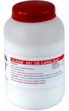 Bileşimi: 250 gramlık kutu içeriği 156,25 gram Sodyum sülfat, 62,50 gram Sodyum bikarbonat, 31,25 gram Sodyum klorürdür. Farmakolojik Özellikler: Sel de Carlsbad, özellikle ruminantlarda olmak üzere evcil hayvanlarda bağırsak içeriğini yumuşatıcı, balgam söktürücü, gaz giderici, iştah açıcı ve antiasid etkilidir. Kullanım Sahası/Endikasyonlar: Hazımsızlık, kabızlık, gazlı mide-bağırsak şişkinlikleri, mide asidi artışında, balgam söktürmek amacıyla ve iştah açmak amacıyla kullanılır. Kullanım Şekli ve Dozu: 2-3 katı su ile sulandırılır ayrıca yeme katılarak 2-3 gün süreyle kullanılır. Sığır günde 70 gr., Koyun-Keçi 16-20 gr. Oral kullanılır. İlaç etkileşimleri: Diğer ilaçlarla bilinen bir geçimsizliği yoktur. Doz aşımında belirtiler, tedbirler ve antidot: Rastlanmamıştır. Kontrendikasyanları: Herhangi bir kontrendikasyona rastlanmamıştır. Genel Uyarılar: Kullanmadan önce Veteriner Hekime danışınız.Çocukların ulaşamayacağı yerlerde bulundurunuz. Muhafazaşartları ve raf ömrü: Oda sıcaklığında, serin ve kuru yerde muhafaza ediniz. Raf ömrü, imal tarihinden itibaren 2 yıl. Ticari takdim şekli: 100-250-500 gramlık plastik kutularda. |