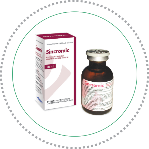 Sığırlarda her bir hayvana 150 μg kloprostenol (2 ml SİNCROMİC), 11 gün aralıklarla kas içi yolla iki enjeksiyon yapılır. İkinci enjeksiyondan 72 saat sonra birinci, 96 saat sonra ikinci suni tohumlama yapılır. Kısraklar da doz her bir hayvana 75 μg (1 ml SINCROMİC), 14 gün arayla iki kez uygulanır. 1. tedaviden sonra belirti görülmezse 19. ve 21. günlerde tohumlamaya gidilir. Parenteral olarak kas içi yolla uygulanmalıdır. |