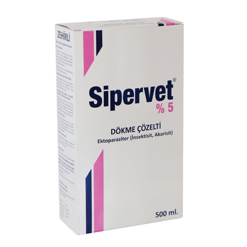 Sineklerle mücadelede, sinek sezonunun başında tek uygulama yapılır,5-8 haftalık aralıklarla uygulama tekrarlanır. Bitlerle mücadelede tek uygulama yeterlidir.Yoğun enfestasyonlarında 4 hafta sonra ikinci bir uygulama yapılabilir.Kenelerle mücadelede 4 haftada bir uygulama önerilir.Çok yoğun enfestasyonların olduğu durumlarda veteriner hekimin önerisine göre uygulama sıklığı artırılabilir. Uygulama yaparken ilaç hayvanların gözlerine bulaştırılmamalıdır. ÖZEL KLİNİK BİLGİLER VE HEDEF TÜRLER İÇİN ÖZEL UYARILAR Etkili bir parazit mücadelesi için Veteriner Hekim'in önerdiği program doğrultusunda uygulama yapınız.Yanlızca dış parazit enfestasyonlarına karşı sırta ve parazitli bölgelere dökülerek uygulanır.Başka yollardan uygulama yapılmaz.Aşırı sıcak havalarda uygulamadan kaçınılmalıdır.Ağır lezyonlu deri bölgeleri ile ağız ve göz çevrelerine uygulanmamalıdır. Parazit enfestasyonlarından korunmak için sürüye yeni girecek hayvanlarında ilaçlanması tavsiye edilir.Uygulamadan sonra hayvanların birbirini yalamalarına ve su kaynaklarına girmemelerine engel olmak için gerekli önlemler alınmalıdır. Gebelikte kullanım : Gebe hayvanlarda kullanımına ilişkin bir komplikasyon bildirilmemektedir. İSTENMEYEN/ YAN ETKİLER SİPERVET % 5 Dökme Çözeltisi evcil hayvanlardaki toksisitesi çok düşüktür.Bu nedenle tavsiye edilen dozlarda kullanıldığı takdirde akut ve kronik zehirlenmelere sebep olmaz.Nadir olarak uygulamayı takip eden 48 saatlik süreç içerisinde bazı sığırlarda hafif huzursuzluk belirtileri görülebilir,ayrıca kızarma,kaşıntı gibi çok hafif seyreden deri hassasiyetlerinin şekillenebileceği bildirilmiştir.Bu gibi reaksiyonlar geri dönüşümlüdür ve bir süre sonra tamamen kaybolmaktadır. İLAÇ ETKİLEŞİMLERİ Organik fosforlu bileşikler piretroitlerin hidrolizini yavaşlatır yada önlerler,bu durum ilacın memelilere yönelik zehirliliğini artırabilir.Diğer piretroitler ilaç etkinliğini arttırır. DOZ AŞIMINDA BELİRTİLER, TEDBİRLER VE ANTİDOT Çok yüksek dozlarda ve uzun süre tekrarlanarak kullanıldığında, akut zehirlenmelere sebep olabilir. Akut zehirlenen hayvanlarda ishal benzeri sindirim sistemi bozuklukları, kronik çırpınmalar, motor uyumsuzluk ve benzeri nöromusküler bozukluklar ile dispne, siyanoz ve ölüm kadar gidebilen klinik tablolar ile karşılaşılabilir. Sentetik piretroitlerle meydana gelen zehirlenmelere özgü seçkin bir antidot bulunmamaktadır. Meydana gelen klinik belirtilere göre semptomatik tedavi uygulanır. GIDALARDA İLAÇ KALINTILARI İÇİN UYARILAR İlaç Kalıntı Arınma Süresi (i.k.a.s): Tedavi süresince ve son ilaç uygulamasından sonra eti için yetiştirilen sığırlar 7 gün geçmeden kesime sevk edilmemelidir. İnsan tüketimi için süt elde edilen sağmal ineklerde kullanılmamalıdır. KONTRENDİKASYONU Aktif maddeye hassasiyeti olan hayvanlara ve 7 günlükten küçük buzağılara uygulanmaz. Sağlıklı deri yüzeyine damlatma haricinde bir yolla (göz,ağız vs.) uygulanmaz. GENEL UYARILAR