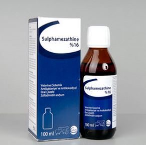 BİLEŞİMİ 1 ml'sinde 160 mg Sülfadimidin sodyum tuzu içerir. ENDİKASYONLARI Sulphamezathine, etçi tavuk ve hindilerde görülen koksidiyozis'in (kanlı ishal'in) sağaltımında kullanılır, ayrıca tavukların koriza ve kolerası, pullorum, tavuk tifosu, pasteurellosis, hava kesesi enfeksiyonları, E. coli tarafından meydana getirilen enfeksiyonlarda endikedir. Sığır, koyun ve keçilerde ise duyarlı bakterilerce meydana getirilen gastroenteritis, kolibasillosis ve koliseptisemi gibi enfeksiyonlar ile koksidiyozis tedavisinde kullanılır. KULLANIM ŞEKLİ VE DOZU Veteriner hekim tarafından başka şekilde tavsiye edilmediği takdirde; Sığır, koyun, keçilerde: 100 mg/kg canlı ağırlık hesabıyla, her 10 kg canlı ağırlık için ilk gün 6 ml, sonraki günlerde 3 ml oral olarak uygulanır. Gerekirse bir miktar su ile karıştırılabilir. Tedaviye 3-5 gün devam edilir. Etçi tavuk ve hindilerde: (İlk gün 160 mg/kg canlı ağırlık; takip eden günlerde 80 mg/kg canlı ağırlık hesabıyla); Her kg canlı ağırlık için ilk gün 1 ml, sonraki günlerde 0,5 ml çözelti hayvanların içebileceği kadar suya karıştırılarak verilir. Tedaviye 4-7 gün devam edilir. |