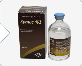 Symec %1 Enjeksiyonluk Çözelti, koyun ve sığırlarda geniş etki spektrumlu endektosit olup aşağıda yazılı iç ve dış parazitlerin tedavi ve kontrolünde kullanılır. Koyunlarda Uyuz etkenleri: Psoroptes ovis, Sarcoptes scabiei var. ovis, Chorioptes ovis Bitler: Bovicola ovis, Linognathus pedalis Burun kurtları : Oestrus ovis Akciğer kıl kurtları: Dictyocaulus filaria Gastrointestinal nematodlar: Haemonchus contortus, Ostertagia circumcincta, Ostertagia trifurcata, Trichostrongylus axei, T. colubriformis, T.vitrinus, Cooperia curticea, Nematodirus filicollis, Nematodirus sp., Oesophagostomum columbianum, O. venulosum, Strongyloides papillosus, Chabertia ovina, Trichuris ovis Sığırlarda Uyuz etkenleri: Psoroptes bovis, Sarcoptes scabiesi bovis, Chorioptes bovis Bitler : Linognathus vituli, Haematopinus eurysternus, Solenopotes capillatus, Damalinia bovis Akciğer kıl kurları : Dictyocaulus viviparus Gastro-instestinal nematodlar: Haemonchus placei, Ostertagia ostertagi (erginler, larval devreler, hipobiotik larvalar), O.lyrata (erginler, L4 larvalar), Trichostrongylus axei, T.colubriformis, Cooperia oncophora, C. punctata, C.pectinata, Nematodirus helvetianus (erginler), N.spathiger (erginler), Oesophagostomum radiatum, Strongyloides papillosus (erginler), Bunostomum phlebotomum, Trichuris sp. Göz nematodların: Thelazia sp (ergin) Nokra etkeni sinek larvaları : Hypoderma bovis (larva), Hypoderma lineatum (larva) İLAÇ KALINTI ARINMA SÜRESİ
