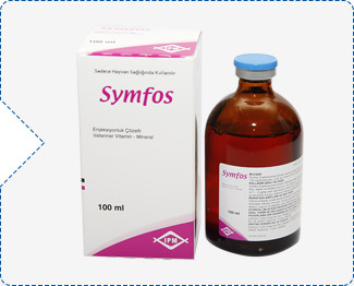Symfos Enjeksiyonluk Çözelti; sığır, at, koyun, keçi, kedi ve köpeklerde fosfor ve vitamin B12 (siyanokobalamin) yetersizliğinden kaynaklanan akut ve kronik metabolizma bozukluklarının korunma ve tedavisinde kullanılır. Fosfor ve vitamin B12 eksikliği kaynaklı, süt ineklerinde görülen hipofosfatemi ve hipokalsemi gibi metabolizma bozukluklarından ileri gelen parezis ve tetanilerin tedavisinde (kalsiyum ve magnezyum preperatları ile birlikte), Sığırlarda kronik indigesyon (hazım bozuklukları) veya ön mide dolgunluğu, beslenme bozukluğu, süt veriminin düşmesi rumen asidozu ve alkolozu gibi her türlü gıdaya bağlı hazımsızlıklar, ketozis ve sindirim sistemi enfeksiyonlarında, Fosfor ve buna bağlı kalsiyum yetersizliği durumları, yeni doğanların iskelet sistemi gelişme geriliği, yabancı madde yeme alışkanlığı (pika), osteomalasi ve raşitzm olguları, sinir sistemi bozuklukları, kemik metabolizması bozukluklarında ve nekahat hallerinde genel durumun desteklenmesinde (D vitamini preparatları ile birlikte), Döl verimi bozukluklarında (gıdaya bağlı ve etkin maddenin eksikliği ya da yokluğundan kaynaklanan infertilizasyon),paraziter ve sekonder anemi durumlarında (destekleyici olarak), atların lumbagosunda kalsiyum tedavisinde (ek olarak), genel düşkünlük (iştahsızlık, aşırı yorgunluk, zayıflama, halsizlik) hallerinde organizmanın direncini arttırmak üzere ve özellikle köpek yavrularında gelişmeyi stimule etmek amacıyla kullanılır. İLAÇ KALINTI ARINMA SÜRESİ