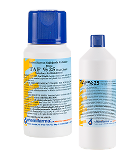 TAF Oral Çözelti; broyler, yumurtacı ve damızlıklarda; Gram pozitif ve Gram negatif mikroorganizmaların neden olduğu Kolibasillozis, Mycoplasmosis, Salmonellosis, Staphylococ ve Streptococ’lardan ileri gelen enfeksiyonlar, Nekrotik enteritis, Koriza, Erysipelas, Riketsiya, Entemoeba ve Klamidia türlerinin sebep olduğu hastalıklarda