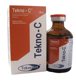 BİLEŞİMİ Her ml’sinde 250 mg Sodyum askorbat (Vitamin C) içerir. KULLANIM YERİ /ENDİKASYONLARI Tekno-C, tüm evcil hayvanlarda C vitamini ihtiyacının karşılanması ve eksikliklerinin giderilmesi durumlarında kullanılır. Anemilerde, gastro-intestinal sistem ve solunum sistemi enfeksiyonlarının sağaltımında destekleyici olarak, KULLANIM ŞEKLİ VE DOZU Tekno-C, kas içi (İM) ve damar içi (İV) olarak at, manda, sığır, koyun ve keçilerde 10 - 20 mg / kg canlı ağırlık; kedi ve köpeklerde 16 mg / kg canlı ağırlık şeklinde uygulanır. Uygulama tedavinin gerektirdiği sürece yapılır. Veteriner Hekim tarafından başka şekilde tavsiye edilmediği taktirde, pratik doz tablodaki gibidir; At - Sığır - Manda: 4 - 8 ml / 100 kg c.a. |