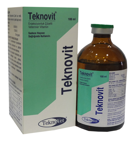 TEKNOVİT BİLEŞİMİ Teknovit Enjeksiyonluk Çözelti; sarı renkli, hafif viskoz ve berrak bir çözelti olup her ml içerisinde : FARMAKOLOJİK ÖZELLİKLER Teknovit Enjeksiyonluk Çözelti, yağda eriyen vitaminlerden A, D3 ve E vitaminini içerir. Enjeksiyon alanından yavaş bir şekilde absorbe olurlar. Karaciğerde depo edilirler. Teknovit Enjeksiyonluk Çözelti, vitamin eksikliğinin hızla tedavisi, dengeli bir şekilde gelişme ve büyümenin sürdürülmesi, stres faktörlerinin önlenmesi ve verimliliğin üst seviyede tutulmasını sağlar. Vitamin A, protein sentezini destekler. Epitelyumlar üzerine etkili olarak biyolojik rnembranlar boyunca organizmanın enfeksiyonlar ve stres faktörlerine karşı korunmasında görev alır. Proteinlerin anabolik Metabolizmasına katılarak verim, hormonal sentez üzerinde etkili olarak da üretim kapasitesinin artırılmasını sağlar. Vitamin D3, organizmanın fosfor-kalsiyum metabolizmasında rol oynar. Kalsiyumun sindirim sisteminden emilimini destekler, Kalsiyum eksikliğinde kemik dokusundan fosfor ve kalsiyum salınmasını sağlayarak Kalsiyum / fosfor oranını dengede tutar. Kalsiyum oranının yeterli olduğu durumlarda gelişme döneminde kalsiyumu kemik dokusu üzerinde fikse eder. E vitamini, musküler dejenerasyon ve hepatik nekrozu önler . Ayrıca seksüel fizyolojide gonodatrophin üretimi, testis fonksiyonlarının devamlılığı ve fötus gelişmesinde önemli rol oynar. İSTENMEYEN ETKİLER Enjeksiyonun yapıldığı yerde, yapıldıktan kısa bir süre sonra kendiliğinden geçen, küçük bir reaksiyon oluşabilir. D3 vitamininin yüksek dozlarda ve uzun süre verilmesi, kemiklerden kalsiyum (Ca) ve fosforun (P) salınmasına ve bu iyonların kan dolaşımındaki seviyelerinin artmasına yol açabilir. Bunun sonucunda bazı yumuşak doku ve organlarda kireçlenme görülebilir. A vitamini aşırı şekilde kullanılır ise, hipevitaminozis’e yol açabilir. İLAÇ ETKİLEŞİMLERİ Bilinen hiçbir ürünle kullanılmasında sakınca yoktur. GIDALARDA İLAÇ KALINTI UYARILARI İlaç kalıntı arınma süresi (i.k.a.s.) ; Et ve süt için “0” gündür. DOZ AŞIMI VE TEDAVİSİ Hipervitaminosis şekillenebileceğinden tavsiye edilen dozlar aşılmamalıdır. KONTRENDİKASYONLARI Nadiren de olsa anaflaktik şok oluştuğu rapor edilmiştir. Anaflaktik şok görüldüğünde adrenalin veya antihistaminlerle sağaltıma geçilir. GENEL UYARILAR Veteriner hekime danışmadan kullanmayınız. Beklenmeyen bir etki görüldüğünde veteriner hekime danışınız Çocukların ulaşamayacağı yerlerde saklayınız. Kullanılan ambalajlar çöp kutusuna atılarak imha edilmelidir. MUHAFAZA ŞARTLARI VE RAF ÖMRÜ Serin ve kuru bir yerde ışıktan koruyarak ambalajında saklayınız. İmal tarihinden itibaren raf ömrü 2 yıldır. TİCARİ TAKDİM ŞEKLİ Teknovit Enjeksiyonluk Çözelti, kutu içerisinde 20-50-100-250 ml’lik amber renkli cam şişelerde satışa sunulmuştur. PROSPEKTÜS ONAY TARİHİ : 11.05.2004 GIDA TARIM VE HAYVANCILIK BAKANLIĞI PAZARLAMA İZİN TARİHİ VE NO: 04.06.2001- 10 / 950 |