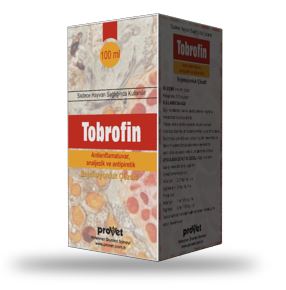 TOBROFİN BİLEŞİMİ Berrak ve renksiz çözeltinin her ml'si 100 mg Ketoprofen içerir. FARMAKOLOJİK ÖZELLİKLERİ Ketoprofen, arilpropionik grubuna ait non-steroid antienflamatuvar, analjezik ve antipiretik etkili bir maddedir. Antienflamatuvar (yangı giderici) özelliği cyclo-oxygenase (COX) enzimlerinin baskılanması yoluyla yangılı dokuda prostaglandinlerin sentezini engelleyerek gelişir. Analjezik (ağrı kesici) etkisi hipotalamustaki ısı düzenleme merkezi yakınındaki ağrı ile ilgili merkezler üzerinde baskılayıcı etkisi ile gerçekleşmektedir. Antipiretik (ateş düşürücü) etkisi pirojen maddelerin düşürdüğü ısı merkezlerindeki ısı reseptörlerinin duyarlılık düzeyini yükselterek meydana gelir. Ketoprofen, kas içi uygulamadan yaklaşık 2 saat sonra kas-iskelet sisteminde antienflamatuvar etkisini gösterir ve yaklaşık 12 saat sonra en yüksek plazma seviyelerine çıkar. %99 oranında plazma proteinlerine bağlanır. Parenteral uygulama sonrası 2 saatlik plazma yarı-ömrü olan ketoprofen temel olarak idrarla atılır. Enjeksiyondan 24 saat sonra uygulanan dozun yaklaşık %80'i vücuttan atılmış olur. Atlardaki uygulamalardan 10 gün sonra idrarda ketoprofen veya metabolitleri gözlenebilir (analitik duyarlılık 50 ng/ml). HEDEF TÜRLER IÇIN ÖZEL KLINIK BILGILER VE UYARILAR Prostoglandin sentezini engelleyerek etki gösterdiğinden operasyon sonrası kullanımında kanama eğiliminin artması sözkonusudur.Operasyon sonrası kanamaların durdurulması yönünde önlem alınmalıdır . Bu amaçla vitamin K1 enjeksiyonu yapılabilir. Yarış amaçlı atlar son uygulamadan sonra 15 gün geçmeden yarıştırılmamalıdır. Damar içi uygulamalar vücut ısısında ve yavaş yapılmalıdır. 6 haftalıktan küçük hayvanlarda güvenliği kanıtlanmadığından kullanılması risklidir. Uygulama halinde hayvan dikkatle gözlem altında bulundurulmalıdır. Hipotansif, hipovolemik ve dehidre hayvanlarda renal toksisiteyi artırma riski bulunmaktadır. Gebelikte kullanım : Farklı deney hayvanlarında yapılan çalışmalarda teratojenik ve karsinojenik etki görülmemiştir.Invitro çalışmalarda mutajenik etkiye rastlanmamıştır. Damızlık boğalarda etkisi bilinmediğinden kullanılmamalıdır.NSAID'ların östrus ve doğum sürecine etkisi bilinmektedir, östrus siklusunun prostaglandin fazında uygulanması durumunda östrus başlangıcında gecikme olabilir.NSAID'ların tokolitik etki nedeniyle doğum üzerine potansiyel geciktirici bir etkisi olduğu bilinmektedir. Tavsiye edilen doz aşılmamalıdır. İLAÇ ETKİLEŞİMLERİ • Diğer non-steroid antinflamatuar ilaçlarla birlikte uygulanmamalıdır. • Uygulamadan sonraki 24 saat içinde diğer non-steroid antinflamatuar ilaçlar verilmemelidir. • Diüretiklerle birlikte uygulanmamalıdır. • Antikoagülan ilaçlarla birlikte uygulanmamalıdır. • Nefrotoksik ilaçlarla birlikte uygulanmamalıdır. İSTENMEYEN ETKİLER • Enjeksiyon sahasında geçici bir irritasyona neden olabilir. DOZ AŞIMINDA BELİRTİLER VE TEDBİRLER Doz aşımında renal bozukluk belirtileri ve uyuşukluk gözlenebilir. GIDALARDA İLAÇ KALINTI UYARILARI İlaç Kalıntı Arınma Süresi (i.k.a.s.) : Tedavi süresince ve son damar içi uygulamadan sonra 1 gün, kas içi uygulamadan sonra 4 gün geçmedikçe kasaplık sığırlar kesime sevk edilmemelidir. İ.K.A.S. inek sütü için (0) gündür. KONTRENDIKASYONLARI • Ketoprofene aşırı duyarlı hayvanlarda kullanılmamalıdır. • Hepatik ve renal yetmezliği olan hayvanlarda kullanılmamalıdır. GENEL UYARILAR Kullanmadan önce ve beklenmeyen bir etki görüldüğünde veteriner hekime danışınız. Çocukların ulaşamayacağı yerde ve gıdalardan uzakta bulundurunuz. UYGULAYICININ ALMASI GEREKEN ÖNLEMLER İlacın göz veya deriye temas etmesi durumunda su ile iyice yıkayınız. MUHAFAZA ŞARTLARI VE RAF ÖMRÜ Oda sıcaklığında (15-25°C) ve ışıktan koruyarak muhafaza ediniz. Raf ömrü imalat tarihinden itibaren 2 yıldır. İlk kullanımdan sonraki raf ömrü 28 gündür. TICARI TAKDIM ŞEKLI Karton kutuda 10, 20, 50 ve 100 ml'lik amber renkli cam şişelerde arzediliir. |