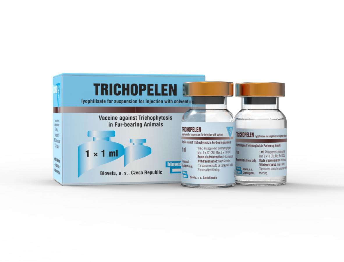 BİLEŞİM Aktif maddeler bir dozda: Trichophyton mentagrophytes min. 2 × 105 CFU, maks. 8 × 106 CFU Solvent Diluent A Enjeksiyon için süspansiyon için liyofilizat, solventle HEDEF TÜRLER Gümüş tilki, kar tilkisi, tavşanlar, çinçilla. ENDİKASYON Kürklü hayvanlarda trikofitoz profilaksisi ve terapisi . DOZAJ Preperasyon lumbar veya gluteal bölgeye intramüsküler olarak uygulanmalıdır. 14 günlük ile 6 haftalı Broyler tavşanlar: Profilattik doz: 2 × 0.25 ml Terapötik doz: 2 × 0.25 ml 6 hafta ve üzeri Gümüş tilki, kar tilkisi, tavşanlar : Profilaktik doz: 2 × 0.5 ml aşı Terapötik doz: 2 × 1 ml aşı Çinçilla : Profilaktik doz: 2 ‐ 3 aylık hayvanlar 2 x 0.25 ml 3 aylık ve daha büyük hayvanlar 2 x 0.5 ml Terapötik doz: 2 x 0.5 ml 14 günlük ila 6 haftalık broiler tavşanlarda aşılama ve yeniden aşılama arasında süre 5 ‐ 12 gün olup diğer hayvanlarda 8 ‐ 12 gündür. ARINMA SÜRESİ Ette 6 hafta. RAF ÖMRÜ 18 ay . Sulandırılmış aşılar 2 saat içerisinde tüketilmelidir. SAKLAMA Soğutulmuş olarak saklayın ve taşıyın (2 °C – 8 °C). Dondurmayın. Işığa maruz bırakmayın. Kuru bir yerde saklayın. PAKETLEME 1 × 1 ml + Diluent A, 5 × 1 ml + 5 × Diluent A, 5 × 10 ml + 5 × Diluent A, 1 × 50 ml + Diluent A |