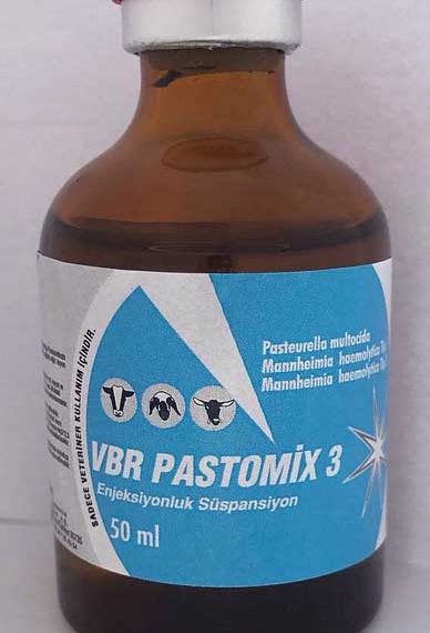 VBR Pastomix 3 AKTİF VE YARDIMCI MADDELER Pasteurella multocida 1×109 CFU /doz Mannheimia haemolytica Tip 1 1×109 CFU /doz Mannheimia haemolytica Tip 2 1×109 CFU /doz Alüminyum hidroksit jele adsorbe edilmiştir. % 0.4 oranında Formaldehit ile inaktive edilmiştir. Aşı içinde koruyucu olarak % 0.01 oranında Thiomersal bulunmaktadır. VBR Pastomix 3 ENDİKASYONLARVBR Pastomix 3 aşısı, Mannheimia haemolytica ve Pasteurella multocida etkenlerinin neden olduğu Pasteurellozis hastalığına karşı aktif bağışıklık sağlama, hastalığın mortalite, klinik bulgular ve lezyonlarının azaltılması amacıyla; sağlıklı sığır, koyun ve keçilere uygulanır. KONTRENDİKASYONLAR: Yoktur. YAN ETKİLERAşı adjuvant içerdiği için enjeksiyon yerinde kısa süreli küçük bir reaksiyon meydana gelebilir. Adjuvant içeren aşılarda görülebilen geçici kızarıklık ve şişlik gibi lokal reaksiyonlar normal aşı reaksiyonlarıdır ve bir iki hafta içinde kaybolur. Nadiren aşırı duyarlılık oluşabilir. Bu durumda anafilaktik şoka karşı adrenalin veya benzeri preparatlar uygulanmalıdır. HEDEF TÜRLER Koyun, keçi ve sığırlar. HER BİR HEDEF TÜR İÇİN UYGULAMA METODU VE YOLU VBR Pastomix 3 aşısı, 3 aylıktan büyük sağlıklı sığırlara 4 ml, koyun ve keçilere deri altı yolla 2 ml miktarında uygulanır. İlk dozun uygulanmasından 2-4 hafta sonra ikinci doz uygulanır. 3 ayın altındaki hayvanlar aşılanırsa, maternal antikorlar göz önüne alınarak, sütten kesme zamanında veya 4-6 aylık olduğunda aşılama tekrarlanmalıdır. YASAL ARINMA SÜRESİ Kesimden 28 gün önce hayvanlar aşılanmamalıdır. SAKLAMA KOŞULLARI VE RAF ÖMRÜ Aşı şişeleri +2°C ile +8°C arasında, direkt güneş ışığından uzakta muhafaza edilmelidir. Dondurulmamalıdır. Açıldıktan sonra 2 saat içerisinde kullanılmalıdır. Üretim tarihinden itibaren 24 ay boyunca raf ömrünü korur. UYARILARAşı 3. aydan itibaren her yaştaki sağlıklı sığır, koyun ve keçilere uygulanır. Aşının gebe hayvanlara uygulanmasında bir sakınca yoktur, gebelik süresince kullanılabilir. Ancak aşılama işlemi esnasında yaratılacak olan stres nedeniyle gebeliğin son dönemlerinde uygulanması önerilmemektedir. Başka bir biyolojik madde ile karıştırılmamalı ve birlikte uygulanmamalıdır. Aşı soğuk zincirde taşınmalı veya muhafaza edilmelidir. Donmuş ve soğuk zincir dışına çıkmış aşılar kullanılmamalıdır. Aşı kullanılmadan önce ve kullanım süresince çalkanarak homojenize edilmelidir. Açılan her aşı şişesi 2 saat içerisinde kullanılmalıdır ve yarım kalan veya boşalan aşı şişeleri usulüne uygun olarak imha edilmelidir. UYGULAYICININ ALMASI GEREKEN ÖNLEMLER VE HEKİMLER İÇİN ÖNERİLER Aşı uygulamasında asepsi ve antisepsi kurallarına uyulmalıdır. ATIK VE KULLANILMAYAN ÜRÜNLERİN İMHASI Son kullanma tarihi geçen veya etiketinde belirtilen saklama koşullarında muhafaza edilemeyen aşı şişeleri, uygulayıcı tarafından gerekli önlemler alındıktan sonra, 121°C’de 20 dakika süreyle otoklavlanarak imha edilmelidir. “Çocukların ulaşamayacağı yerlerde bulundurunuz” “Beklenmeyen bir etki görüldüğünde veteriner hekime danışınız” TİCARİ TAKDİM ŞEKLİFarmasötik Tip II cam veya polipropilen plastik şişelerde 5 koyun-keçi/2,5 sığır dozu (10 ml), 25 koyun-keçi/12,5 sığır dozu (50 ml), 50 koyun-keçi/ 25 sığır dozu (100 ml) ve 125 koyun-keçi/62,5 sığır dozu (250 ml) miktarlarında ambalajlanacaktır. Aşı şişeleri bütil tıpa ve alüminyum kapak ile kapatılarak etiketlenecektir. |