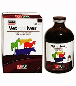 VET-yzİVER BİLEŞİMİ Renksiz steril çözeltinin 1 ml.si 10 mg. ivermektin içermektedir. FARMAKOLOJİK ÖZELLİKLERİ Bir Avermektin türevi olan İvermektin Streptomyces avermitilis'in fermantasyon ürünüdür.İvermectin en az %80 oranında 22-23 dihidroavermektin Bla ve en çok %20 oranında 22-23 dihidroavermektin Blb komponentlerinden kuruludur, İverrnektin, parazitlerin motorik ganglion sinapsislerinde (nematodlar) veya nöromuskuler son plaklarda (artropodlar) Gama. Amino Butirik Asit (GABA) salgısını artırmak suretiyle klor (CI-) kanallarını açık tutarak motorik sinir impulsunun geçişini önler; parazit felç olur ve ölür.. Buna karşılık, ivermektin memeli hayvanlarda kan/beyin bariyerini aşıp merkezi sinir sistemi içinde yer alır GABA-nerjik sinirlere yeterince nüfuz edemediği için, konak hayvana zarar vermeksizin parazitleri öldürür. Deri altı uygulamada maksimal plazma konsantrasyonuna erişme zamanı ortalama 1.3 gün. plazma eliminasyon yarı ömrü koyunlarda ortalama 3.5 gün, sığırlarda 8 gündür. Plazma proteinlerine bağlı olarak taşınır. Dağılım hacmi yüksektir. Beyin-omurilik sıvısı hariç bütün dokulara, vücut sıvılarına nüfuz eder. Yağ dokularında depolanarak yavaş yavaş salındığı ve elimine edildiği için parazit türlerine göre 2-4 hafta arasında değişen kalıcı etkisi vardır. Esas olarak safra salgısı ile ve çok düşük oranda da idrarla atılır. Atılan maddenin %90 dan fazlası metabolize olmamış ana bileşiktir. KULLANIM SAHASI/ENDİKASYONLAR Sığır ve koyunlarda aşağıdaki iç ve dış parazitlere karşı kullanılır: Sığırlarda Gastro-intestinal Nematodlar: Heamonchus placei, Ostertagia ostertagi (erginler, larval devreler, hipobiotik larvalar), Ostertagia Iyrate (erginler, L4 larvalar), Meektocirrus digitatus (erginler), Trichostrongylus axei, T.colubriformis, Cooperia oncophora, C.punetata, C.pectinata, Nematodirus helvetianus (erginler), N.spathiger (erginler), Oesophagostomum radiatum, Strongyloides papillosus (erginler), Bunostomum phlebotomüm ,Toxacara vitulorum Akciğer Kıl Kurtları: Dictyocaulus viviparus Deride Filariosis Etkenleri: Parafilaria bovicola Göz Nematodları: Thelezia spp. (ergin) Nokra etkeni sinek larvaları: Hypoderma bovis (larva), Hypoderma lineatum (larva) Mydriasis etkenleri :Dermatobia hominis (larva) Yara Kurtları (parazitik dönemde): Chrysomya bezziana, Cochliomya hominivorax Uyuz Etkenleri: Psoroptes bovis, Sarcoptes scabei var.bovis, Chorioptes bovis Bitler: Linognatus vituli, Haematophinus eurysternus, Solenopotes capillatus, Damalinia bovis Keneler (bazı tek konaklı keneler,yumuşak keneler): Boophylus spp, Ornithodurus savignyi Koyunlarda Gastro-intestinal Nematodlar: Heamonchus contortus, Ostertagia circumcincta, Trichostrongylus axei,T.colubriformis,T.vitrinus, Cooperia curticei, Nematodirus fılicollis,Oesophagostomum columbianum, Chaberthia ovina, Trichuris ovis Akciğer Kıl Kurtları: Dictyocaulus filana Uyuz Etkenleri: Psoroptes ovis, Sarcoptes scabei var. ovis, . Bitler: Bovicola ovis, Linognatus pedalis Koyun Yapağı Sineği: Melophaga ovinus Burun Kurtları: Oestrus ovis Yara Kurtları: Chrysomia bezziani Keneler (Tek konaklı): Boophylus spp. KULLANIM ŞEKLİ VE DOZU Sadece deri altı yolla uygulanır. Genel farmakolojik doz 0.2 mg ivermektin /kg.ca . Pratik doz : 1 ml / 50 kg c.a Uygulama yapılırken asepsi ve antisepsi kurallarına uyulmalı, kuru, steril enjeksiyon iğnesi ve enjektör kullanılmalıdır. Pratik doz tablosu KOYUN SIĞIR 10 ml. den daha fazla hacimdeki dozların bölünerek ayrı yerlere enjekte edilmesi tavsiye olunur. Sadece deri altı enjeksiyona mahsustur. Kas içi ve damar içi yolla kullanmayınız. ÖZEL KLİNİK BİLGiLER VE HEDEF TÜRLER İÇİN UYARILAR Gebelikte Kullanım: Tavsiye edilen kullanım şeklinde gebeler için güvenlidir. Koyunlarda psoroptik uyuz tedavisinde en iyi sonuçlan alabilmek için 7 gün ara ile 2 defa uygulama yapılması tavsiye olunur. İnsan tüketimi için süt elde edilmekte olan sağmal inek ve koyunlara uygulanmamalıdır. İSTENMEYEN ETKİLER Deri altı enjeksiyonu takiben enjeksiyon bölgesinde yumuşak doku şişliklerine nadir olarak rastlanabilir. Bu reaksiyonlar herhangi bir müdahaleye gerek kalmadan kendiliğinden iyileşir İLAÇ ETKİLEŞİMLERİ İvermektin 'in diğer ilaçlarla geçimsizliğine dair bir bilgi bulunmamaktadır. DOZ AŞIMINDA BELİRTİLER, TEDBİRLER, ANTİDOT Tolerans sınırı geniştir.Normalden 20 kat fazla uygulandığında ataksi ve depresyon,tremor,konvulsiyon ve koma gibi semptomlar görülür.Bilinen bir antidotu yoktur. Semptomatik tedavi uygulanır. GIDALARDA İLAÇ KALINTI UYARILARI İlaç kalıntı arınma süresi (i.k.a.s.):Tedavi süresince ve son ilaç uygulamasından sonra eti için yetiştirilen sığırlar 35 gün, koyunlar 42 gün geçmeden kesime gönderilmemelidir. İnsan tüketimi için süt elde edilmekte olan sağmal inek ve koyunlara uygulanamaz. KONTRENDİKASYONLARI Tanımlanmamıştır. GENEL UYARILAR -Kullanmadan önce veteriner hekime danışınız. -Çocukların ulaşamayacağı yerde bulundurunuz. -Gıda maddelerinden uzakta bulundurunuz. -Önerilen doz ve süre aşılmamalıdır UYGULAYICININ ALMASI GEREKEN ÖNLEMLER VE HEKİMLER İÇİN UYARI İlaç kullanılırken sigara içilmemeli ve yemek vb. yenilmemelidir. İlaçla temasdan kaçınılmalı ve ilaç kullanıldıktan sonra eller yıkanmalıdır. MUHAFAZA ŞARTLARI VE RAF ÖMRÜ 15-20 C°'de güneş ışınlarından korunarak muhafaza edilmelidir. Raf ömrü üretim tarihinden itibaren 2 yıldır. KULLANIM SONU İMHA, HEDEF OLMAYAN TÜRLER İÇİN UYARI İvermektin, balıklar ve suda yaşayan diğer canlılar için toksik olduğundan, kullanılmış ilaç şişelerini sulara karışmamasına dikkat ediniz. Ölüme sebep olabileceğinden; başta Collie, ingiliz çoban köpekleri ve benzeri ırklar olmak üzere, köpeklerde kullanmayınız. Raf öm