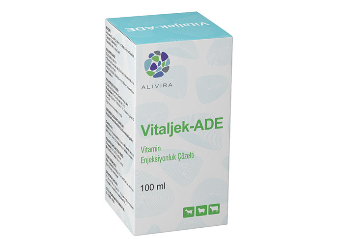 VITALJEK ADE BİLEŞİMİ Açık sarı renkli, steril çözetinin her 100 ml.si Vitamin A palmitat 5 gram ( 8.5 milyon i.ü ) FARMAKOLOJİK ÖZELLİKLERİ Vitamin A protein sentezindeki roluyle epitel dokunun oluşması,protein anabolizmasının gelişimi , seksüel hormonların sentezi ,çeşitli enzimlerin indüksiyonu , çeşitli enfeksiyonlara ve paraziter hastalıklara karşı direncin artırılmasında önemlidir.Vitamin A verildikten 4 saat sonra plazmada pik yoğunluğa ulaşır ve karaciğerde depolanır.Metabolize olduktan sonra metabolitleri idrar ve gaita ile atılır. Vitamin D3 kalsiyum ve fosfor metabolizmasında etkili olur. Kalsiyumun sindirim sisteminden emilmesini , kalsiyum ve fosforun kemik dokusundan salınmasını, kemik ve kıkırdak dokuda kalsiyumun fikse edilmesini ve kalsiyumun renal ekskresyonunu düzenler. Vitamin D3 alındıktan sonra yağ dokuya bağlanır.uygulanan dozun %40 kadarı vucudu 10 gün içinde metabolitleri halinde safra ile terkeder. Vitamin E doymamış yağ asitlerinin stabilizasyonunda antioksidan olarak görev alarak biyolojik membranların korunmasında , kas dejenerasyonunun ve hepatik nekrozun önlenmesinde önem taşır.Seksüel fizyolojide gonadotrophin üretimi , testis fonksiyonlarının düzenlenmesi ve fetusun gelişinde rol almaktadır.Vitamin E enjeksiyondan sonra tüm vucut dokularına yayılır.Karaciğer ve kalp dokusunda daha yoğun miktarlarda bulunur. Uygulamadan sonra 1 hafta içinde büyük çoğunluğu safra ile atılır. ÖZEL KLİNİK BİLGİLER VE HEDEF TÜRLER İÇİN UYARILAR Gebelikte kullanımı : Önerilen dozlarda içerdiği vitaminlerin kullanımı gebelik yönünden güvenlidir. İSTENMEYEN / YAN ETKİLER Önerilen dozlarda bilinen bir yan etkisi yoktur DOZ AŞIMINDA BELİRTİLER, TEDBİRLER ve ANTİDOT Doz aşımında Vitamin A veya Vitamin D akut toksikasyonuna bağlı belirtiler gözlenebilir. Semptomatik olarak müdahale edilir. GIDALARDA İLAÇ KALINTI UYARILARI İlaç kalıntı arınma süresi (İkas) :Et ve süt için 0 gündür KONTRENDIKASYONLARI Önerilen dozlarda bilinen bir kontrendikasyonu yoktur. HEDEF OLMAYAN TÜRLER İÇİN UYARILAR Kedi ve köpeklerde kullanılmaz. GENEL UYARILAR Kullanmadan önce ve beklenmeyen bir etki görüldüğünde veteriner hekime danışınız. Çocukların ulaşamayacağı yerde bulundurunuz MUHAFAZA ŞARTLARI VE RAF ÖMRÜ Oda sıcaklığında (15-25 C) saklanır. Raf ömrü imalat tarihinden itibaren 2 yıldır. |
