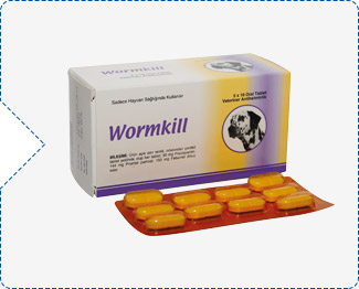 WORMKILL Oral Tablet; köpeklerin aşağıda isimleri yazılı nematod ve sestod türlerinin neden olduğu paraziter invazyonların mücadelesi ve kontrolünde kullanılır. Askaritler: Toxocara canis, Toxascaris leonina (erginleri ve ergin olmayan türleri) Kancalı Kurtlar : Uncinaria stenocephala, Ancylostoma caninum (erginleri) Kamçılı Kurtlar: Trichuris vulpis (erginleri) Şeritler: Echinococcus granulosus, Echinococcus multilocularis, Dipylidium caninum, Taenia sp., İLAÇ KALINTI ARINMA SÜRESİ